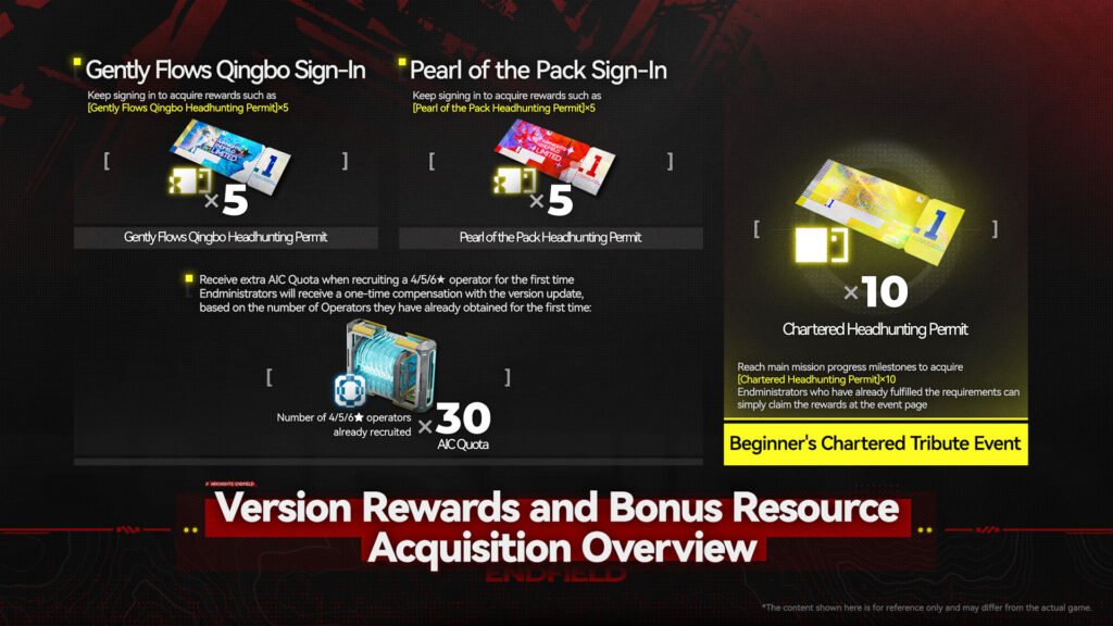 ● Recompensas sistêmicas ampliadas: a obtenção de Cotas AIC foi expandida. Jogadores passam a receber Cotas ao adquirir Operadores 4-Estrelas, 5-Estrelas e 6-Estrelas pela primeira vez. Para aqueles já obtidos antes da atualização, as Cotas correspondentes serão enviadas retroativamente via correio interno do jogo.