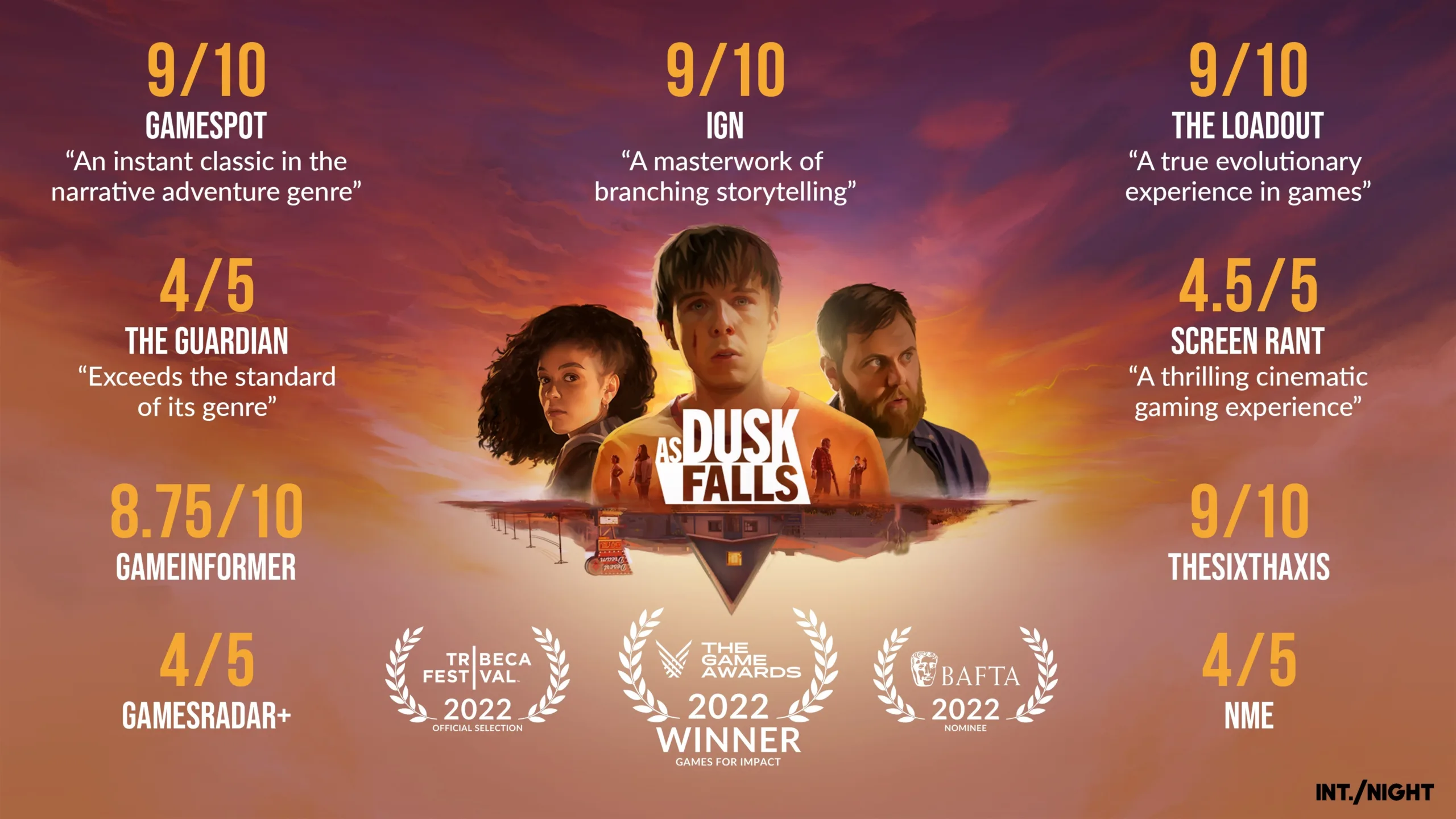 A INTERIOR/NIGHT publicou um Diário do Desenvolvedor em vídeo apresentando os recursos exclusivos de As Dusk Falls no PS5. Este drama interativo, vencedor do The Game Awards, chega aos consoles PlayStation em 7 de março. O vídeo também explora o que o PlayStation significa para a equipe da INTERIOR/NIGHT, incluindo suas contribuições vitais para os sucessos comerciais focados em narrativa como Heavy Rain e Beyond: Two Souls.