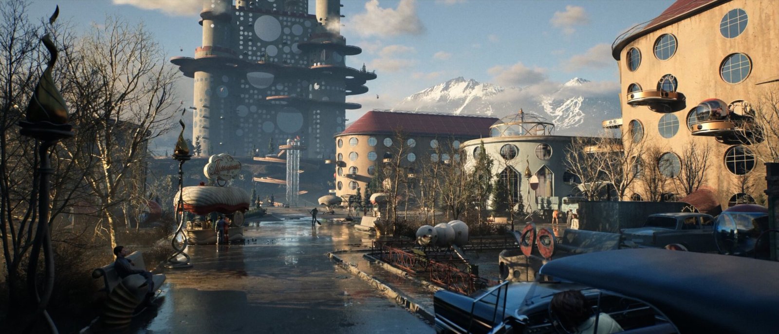 Distopia e retrofuturismo com gráficos realistas.
