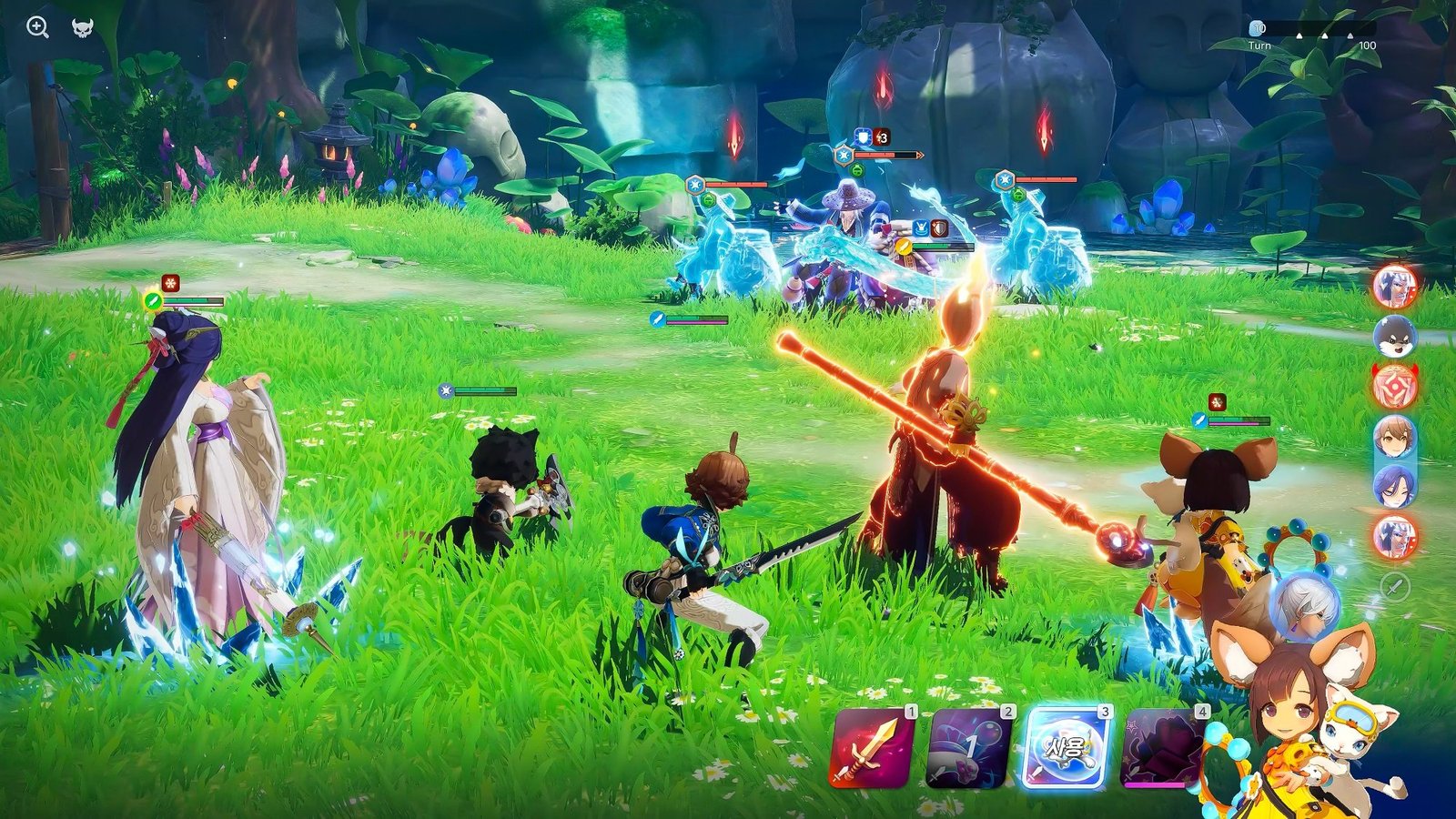 - No modo baseado em turnos, todos os cinco membros da equipe entram em campo de batalha para se unirem e vencerem.