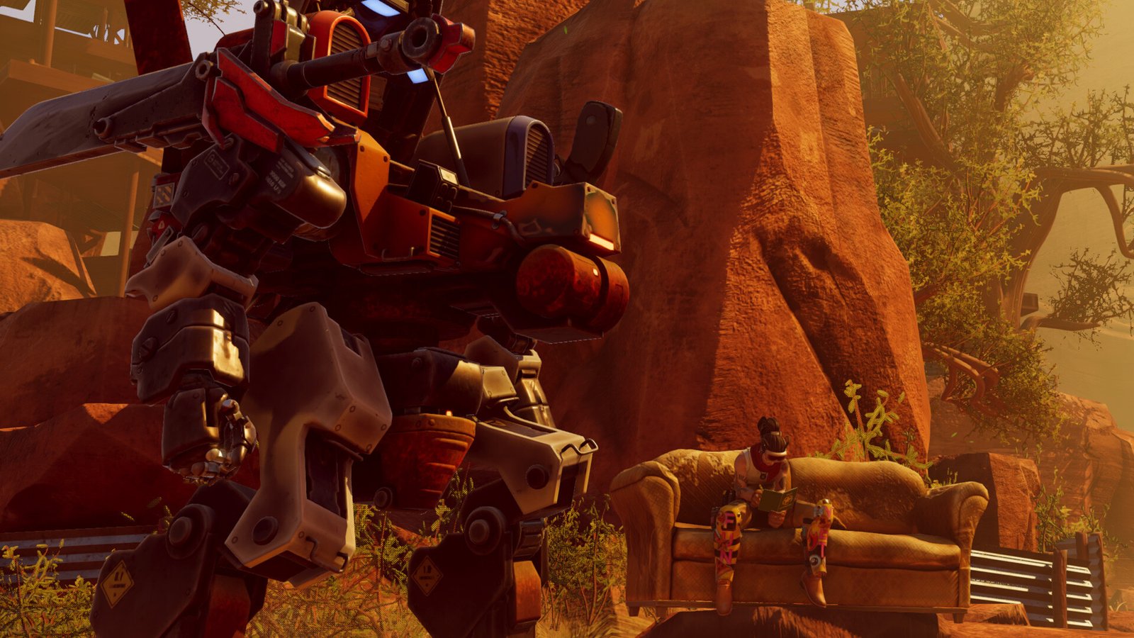 Vais pilotar o Desert Raptor MKII, um Mech de poder extraordinário. É um veículo de combate extremamente personalizável que pode ser equipado com diversos sistemas ofensivos: armamento pesado, armas de combate corpo a corpo, armas hidráulicas de cerco a vapor, armas de fogo explosivo e muito mais. Também pode ser equipado com vários sistemas defensivos: propulsores de alta velocidade, impulsores para desvios, escudos antimotim e muito mais.