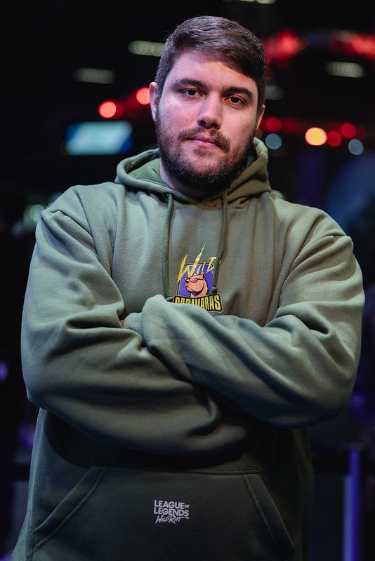 Na rota superior, Pacheco representa a nova geração de talentos em ascensão. É especialista em campeões de split-push, estratégia em que o jogador se separa do time para pressionar uma rota lateral e forçar o adversário a se dividir, combinando técnica e leitura de jogo para criar vantagem no mapa.