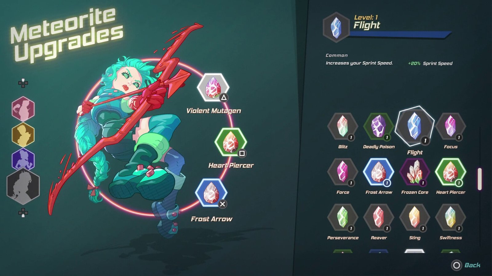 - Use os meteoritos para aumentar seus atributos e mudar os efeitos das suas habilidades