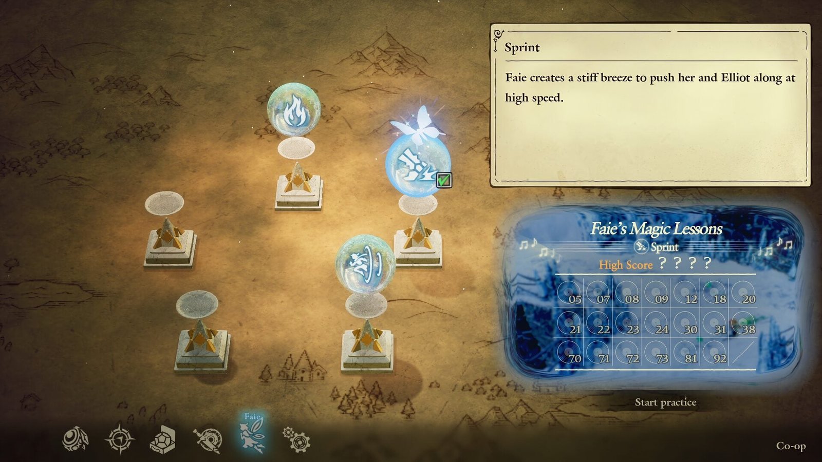 - Lições de Magia da Faie: Conforme os jogadores descobrem novas magias de fada para Faie, eles podem desbloquear minijogos opcionais conhecidos como Lições de Magia da Faie (Faie’s Magic Lessons). Ao aproveitar ao máximo uma habilidade recém-aprendida e buscar pontuações altas, os jogadores podem ganhar recompensas — principalmente registros que desbloqueiam faixas da trilha sonora do jogo no menu Música.