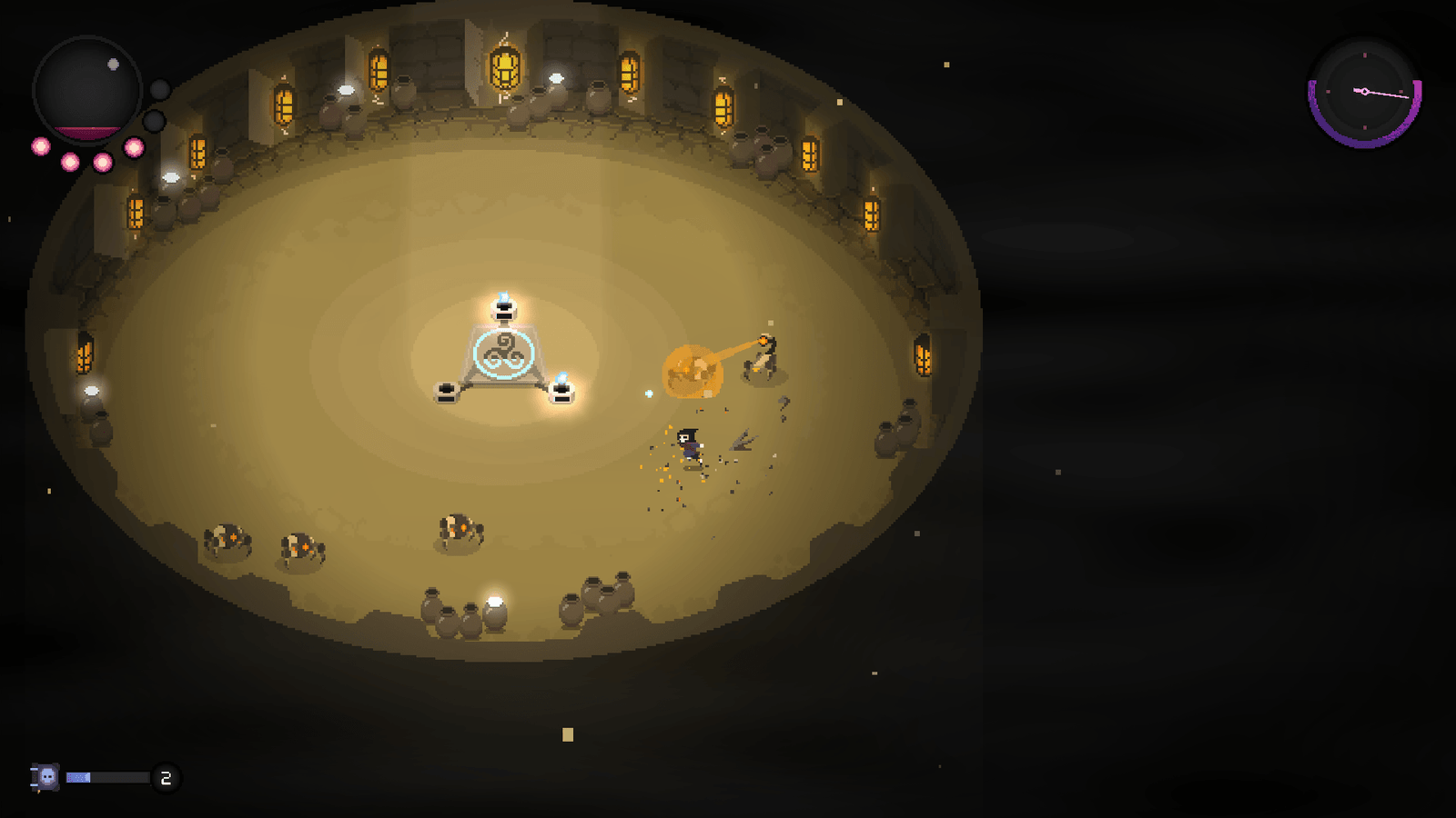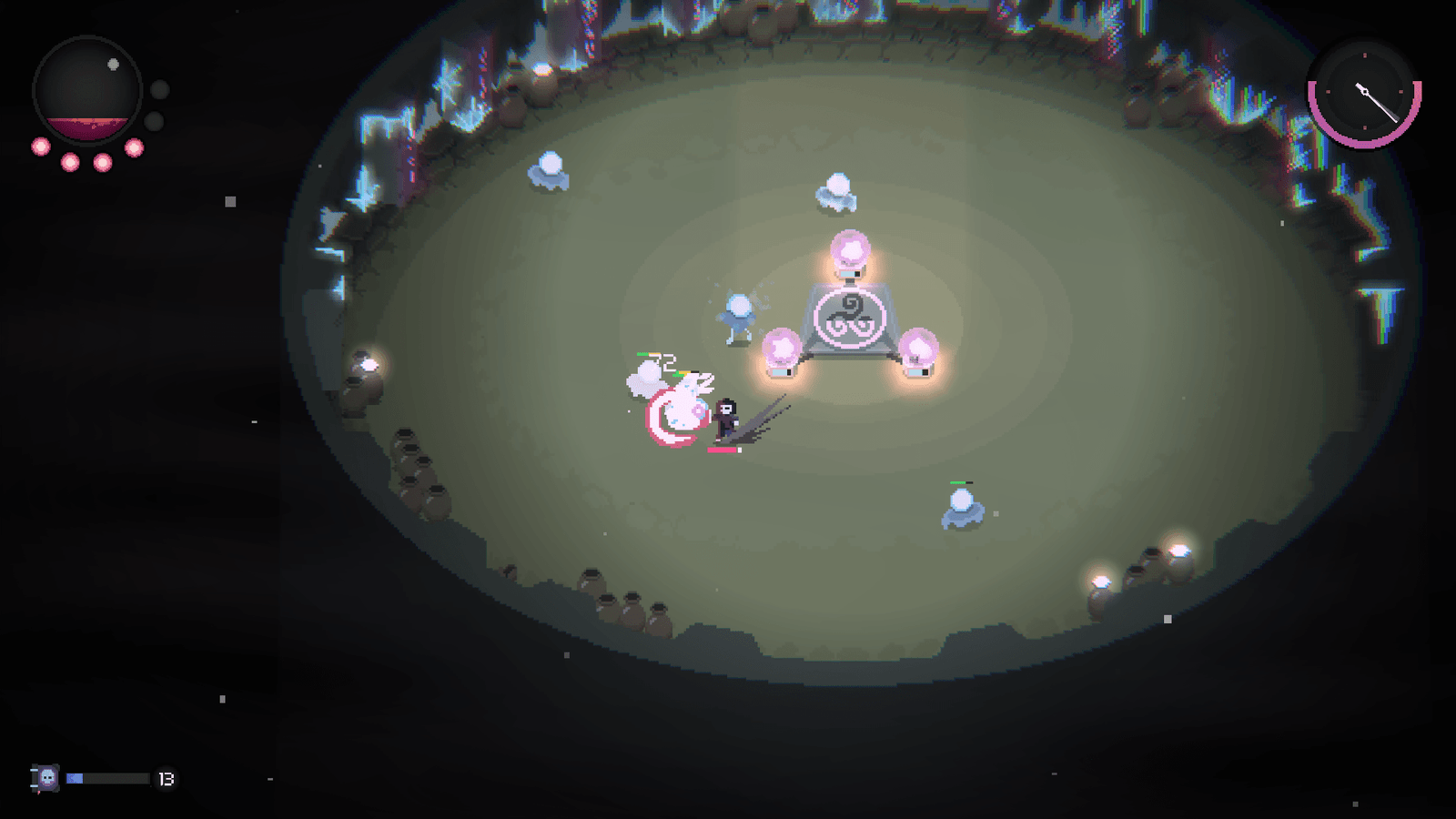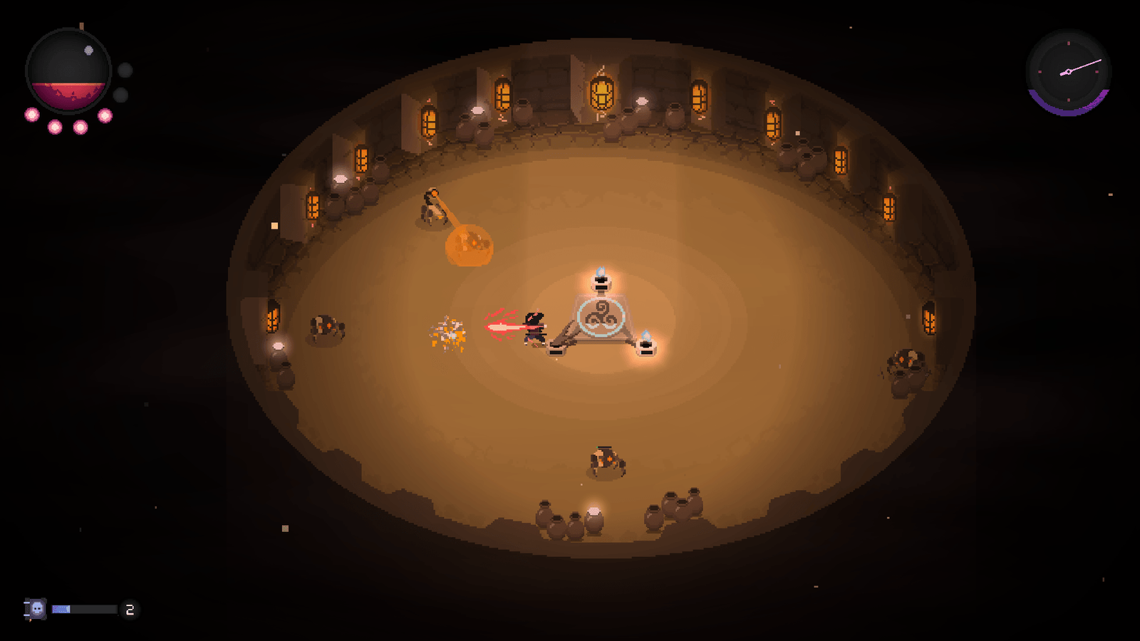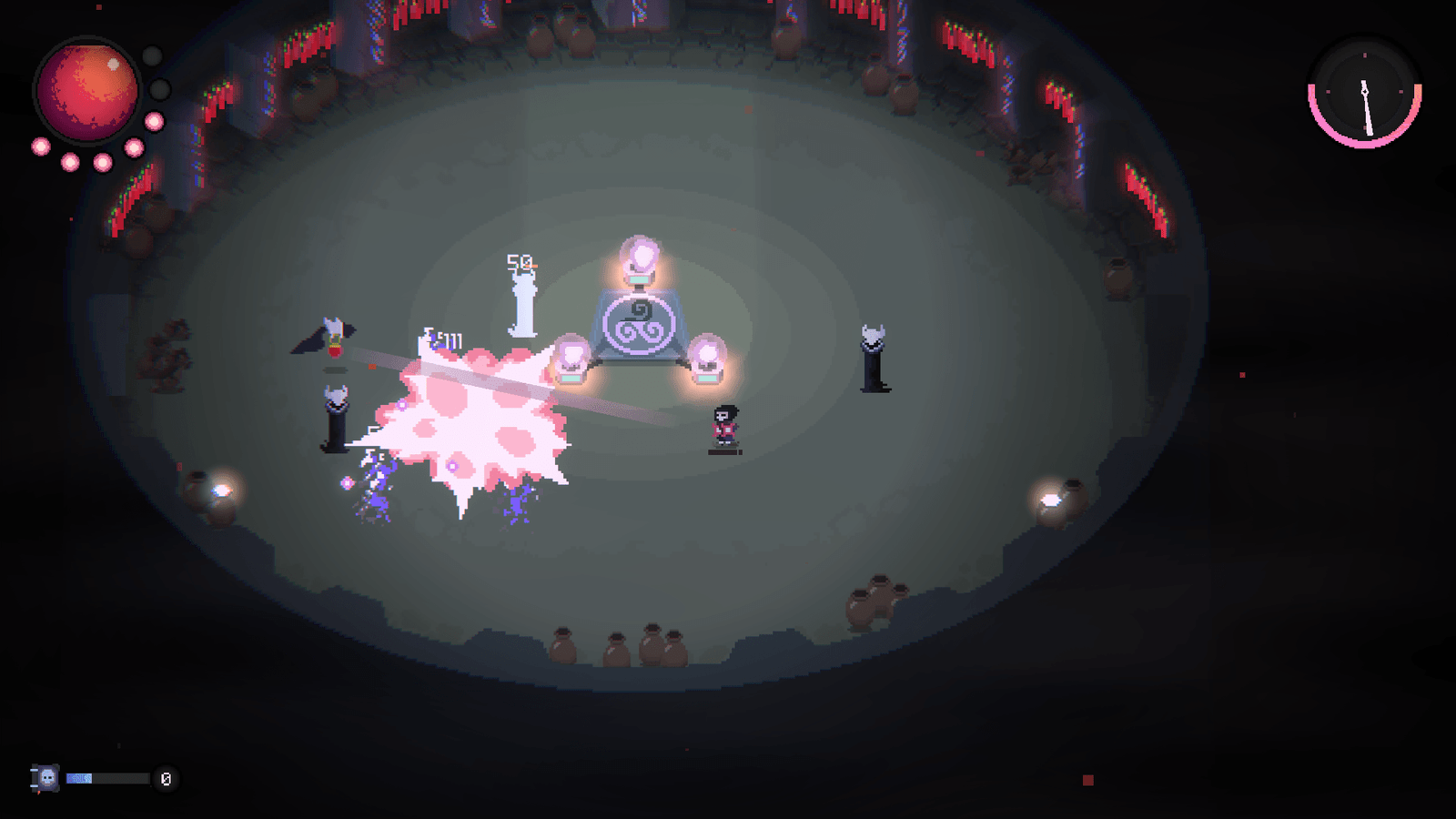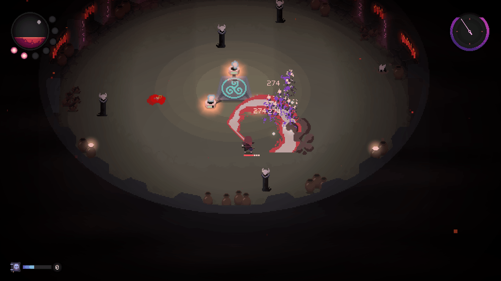 Cada camada do poço é protegida por hordas de inimigos que tentam acabar com essas almas, e se todas forem destruídas, adeus progresso. Volte ao topo e comece tudo de novo, sem atalhos. É uma corrida de resistência mental, não física.