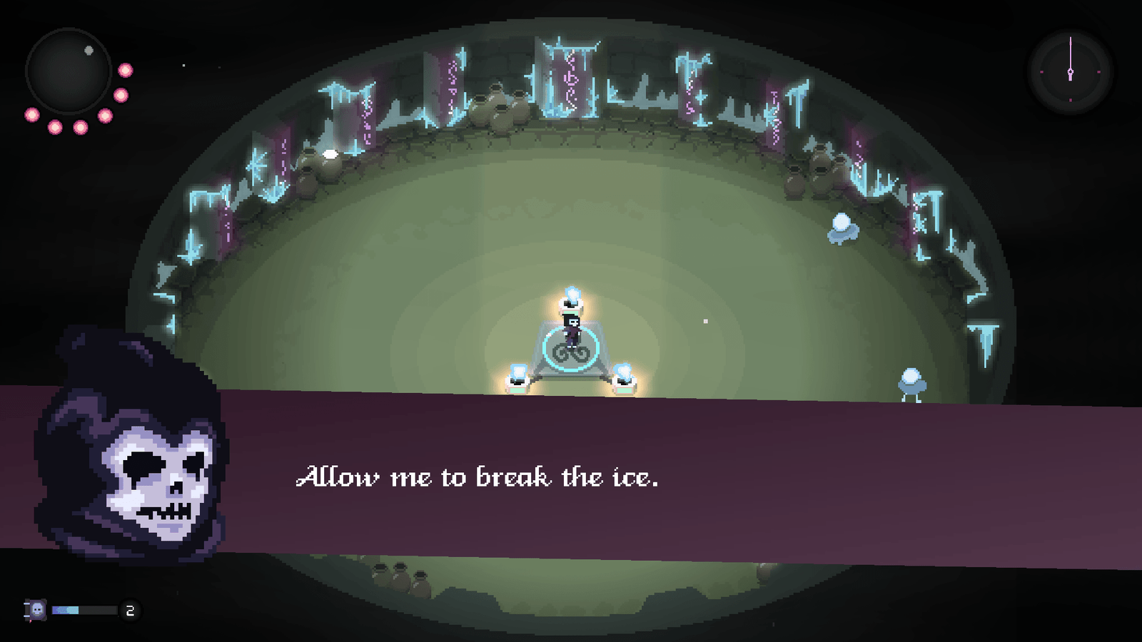 Não é um jogo longo. Dá pra terminar em uma tarde se você estiver focado. Mas Death Kid não se trata de duração, e sim de repetição e da vontade constante de superar a última tentativa. A cada run, algo muda: uma estratégia, uma escolha de habilidade, uma sorte diferente.