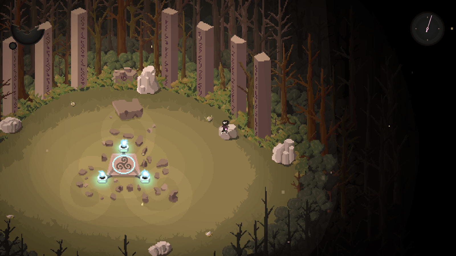 O que diferencia Death Kid de outros roguelikes é sua estrutura baseada em defesa e tempo. Enquanto a maioria foca em sobrevivência individual, aqui a prioridade é proteger e essa inversão de foco muda completamente a dinâmica. É quase um tower defense com um único defensor e muito improviso.