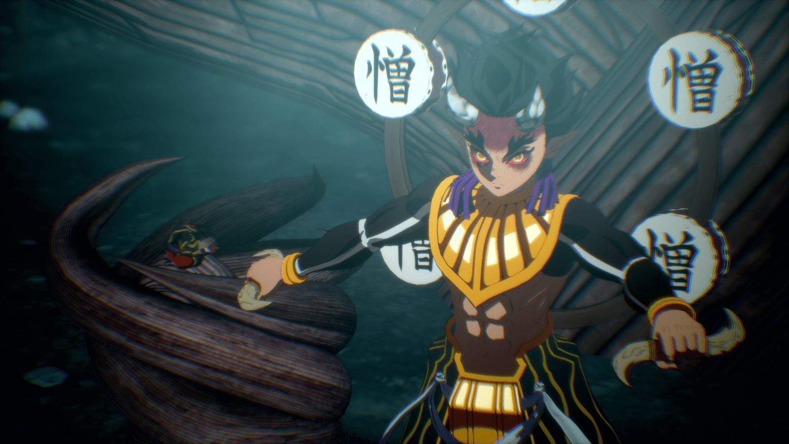 - Voz de Sistema do Versus Mode: Conj. de Demônios Superiores — Akaza, Daki, Gyutaro, Zohakuten e Gyokko