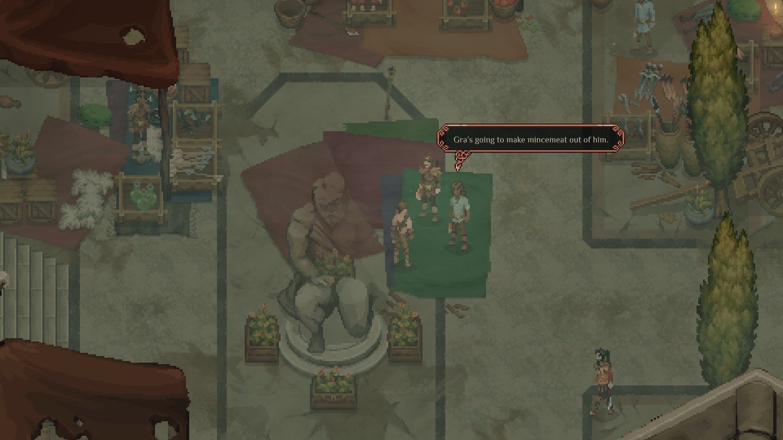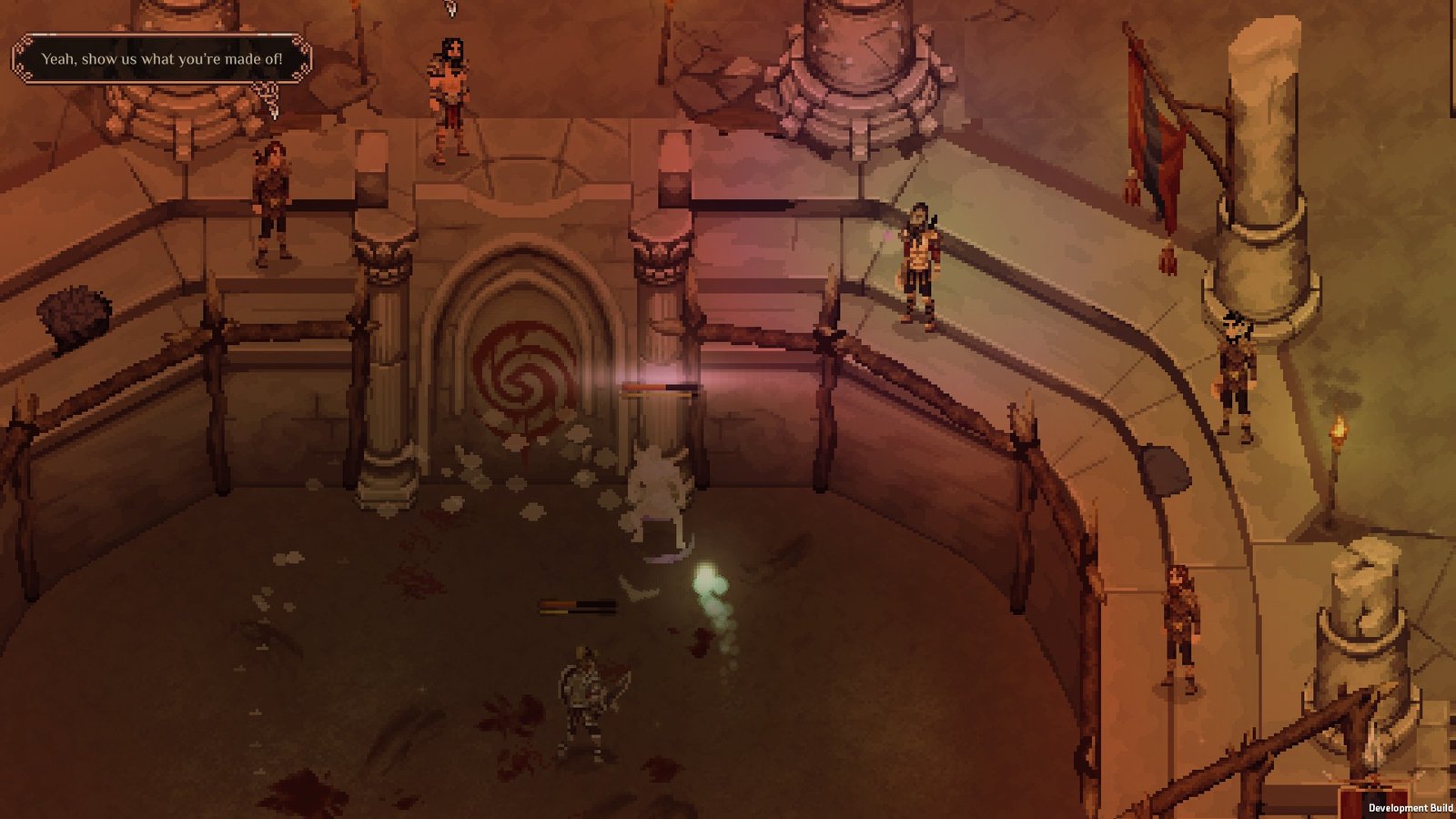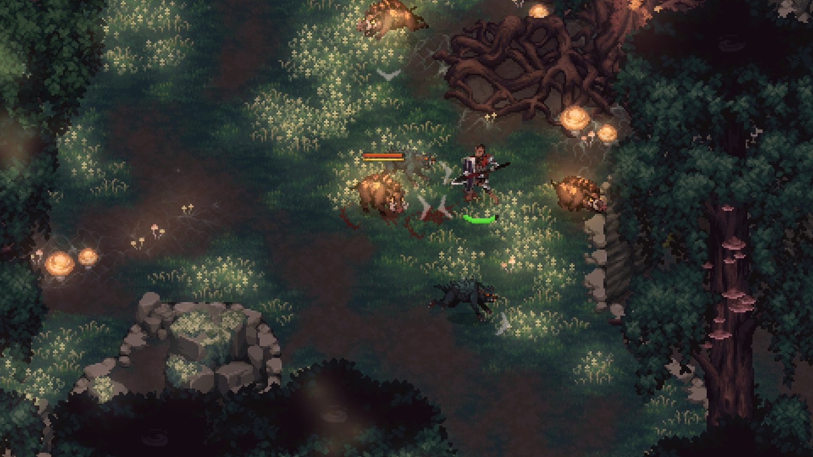 Os personagens são bem detalhados dentro do estilo pixelado, e as animações de combate são fluidas. Apesar da simplicidade gráfica, a arte consegue capturar a brutalidade do mundo e o impacto das ações do jogador.