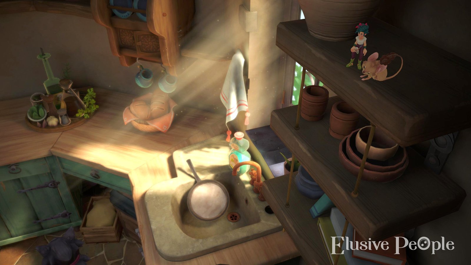 Elusive combina exploração com coleta de recursos e tesouros, criação e missões em uma casa gigante interconectada por túneis.