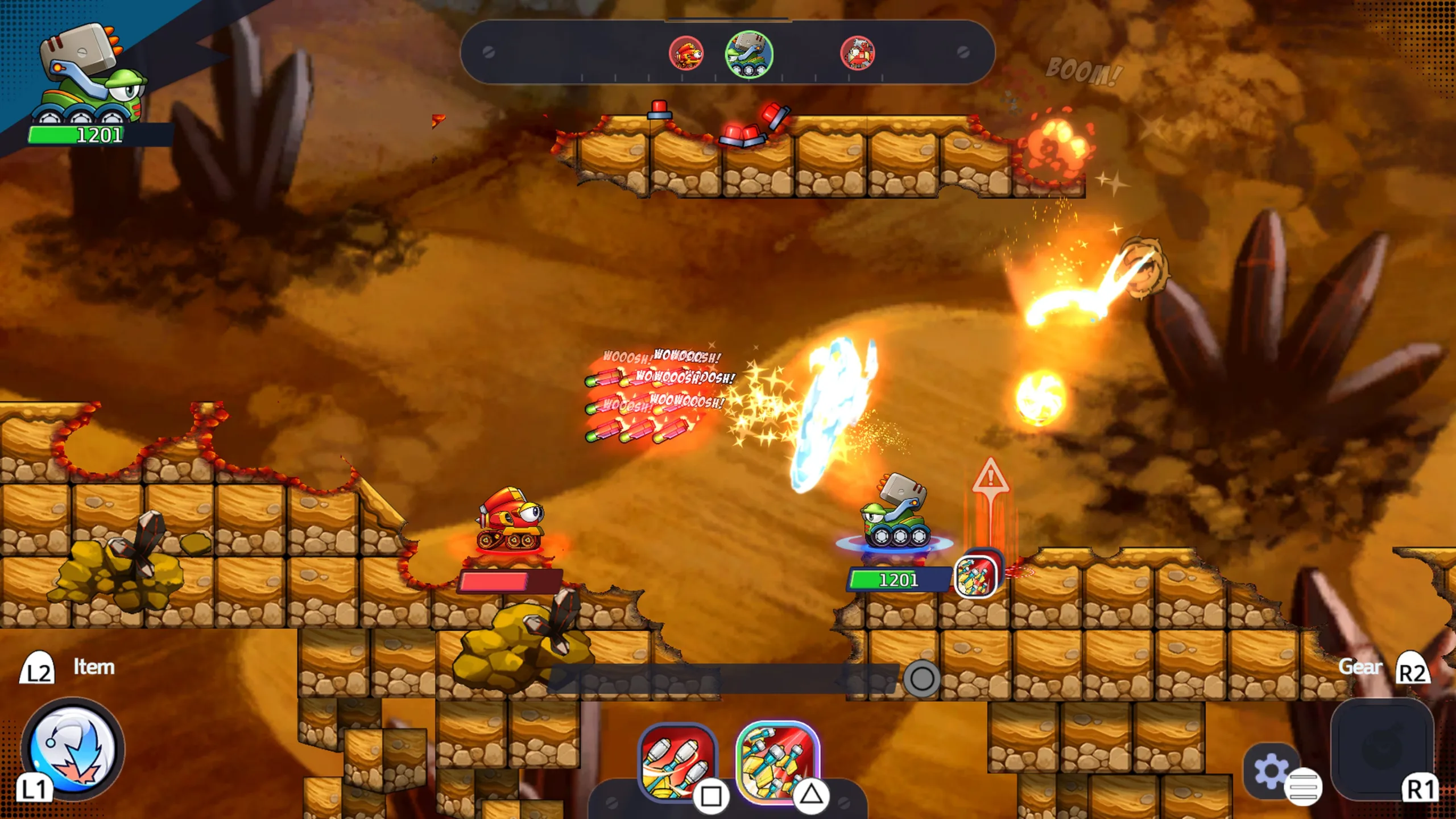 - Uma briga em tempo real com controles simples – Use os controles simples para buscar a vitória nessas batalhas, evitando os tiros de canhão de seus inimigos e acertando seus próprios tiros! A tensão aumenta, pois os jogadores nunca sabem quando a próxima saraivada de tiros acontecerá! Preste muita atenção nas trajetórias dos tiros e use itens para sobreviver às batalhas!
