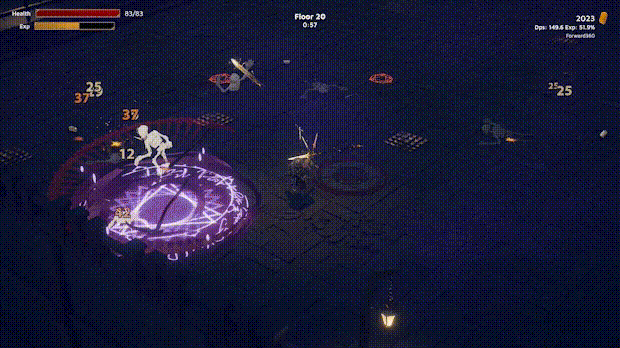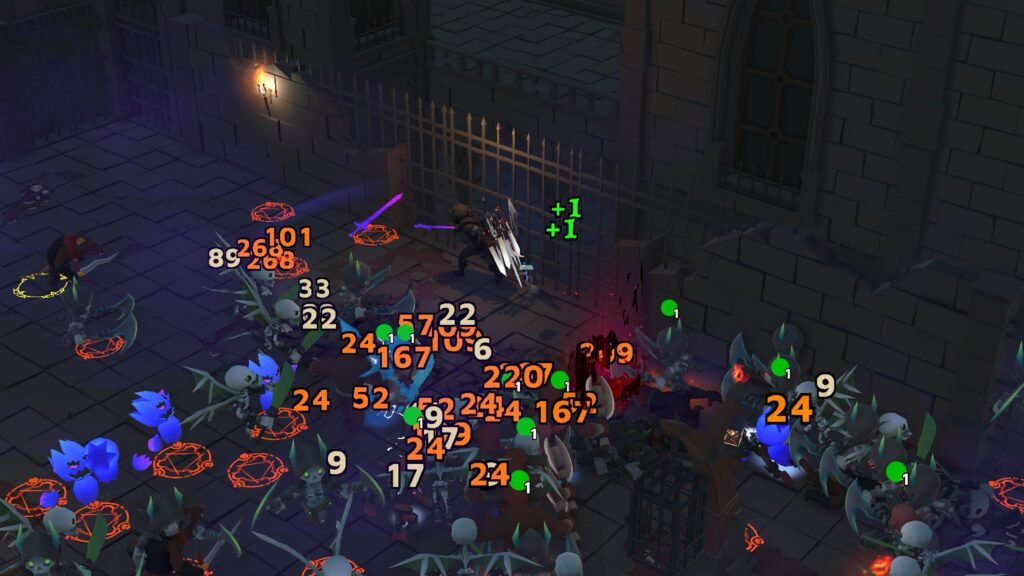 O diferencial está no modo como o combate acontece: suas armas flutuam ao redor do personagem e atacam automaticamente, criando um balé caótico de lâminas, lanças e feitiços girando por todos os lados. A estética isométrica e o ritmo acelerado dão aquela sensação de adrenalina cronometrada, as partidas são curtas, intensas e crescem em dificuldade rapidamente.