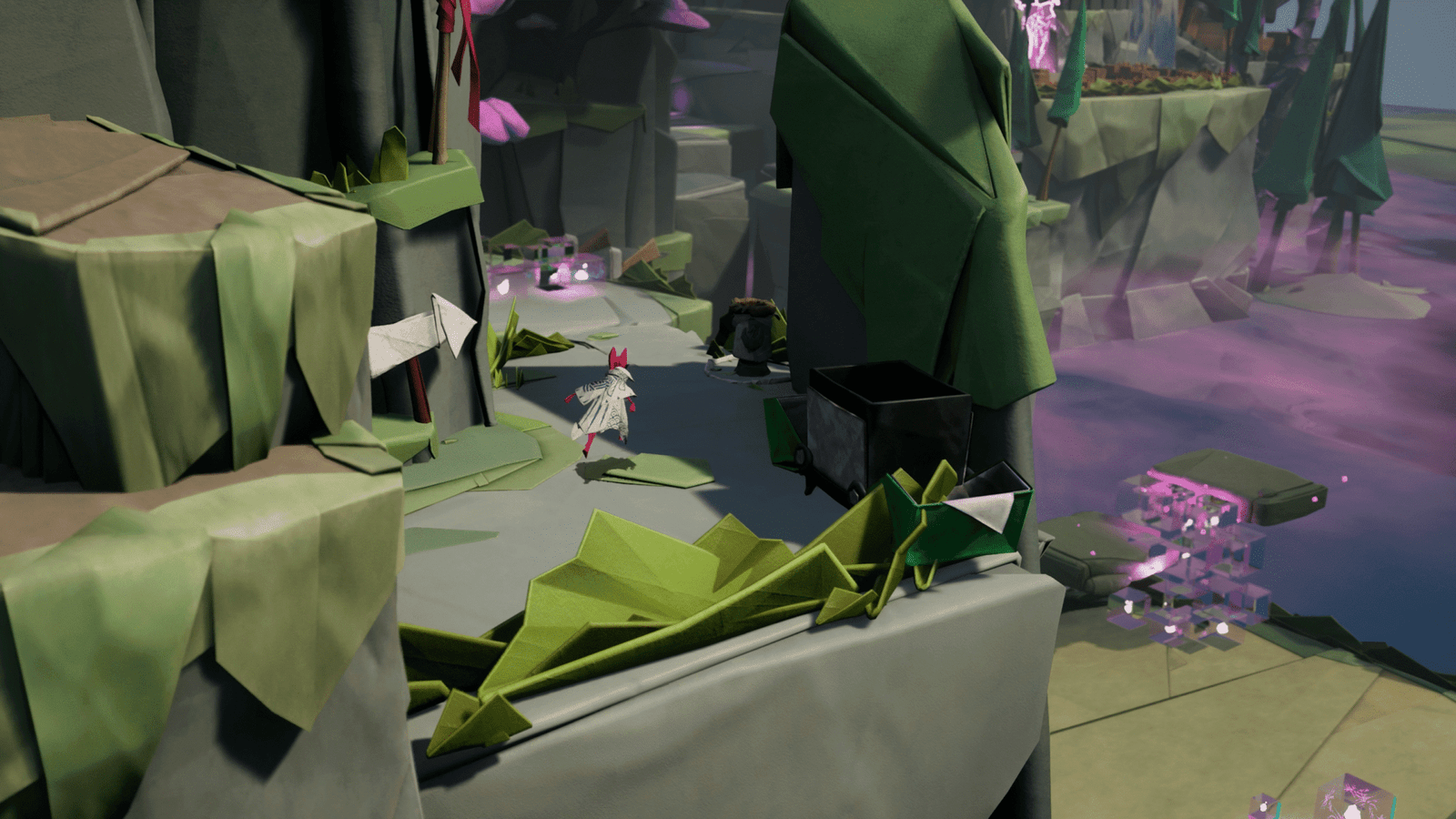 Se o gameplay divide opiniões, o visual dificilmente passa despercebido. A estética de origami é belíssima e bem detalhada, criando cenários únicos e cheios de personalidade. O contraste entre personagens animados em framerate reduzido e ambientes mais estáveis gera um efeito interessante.