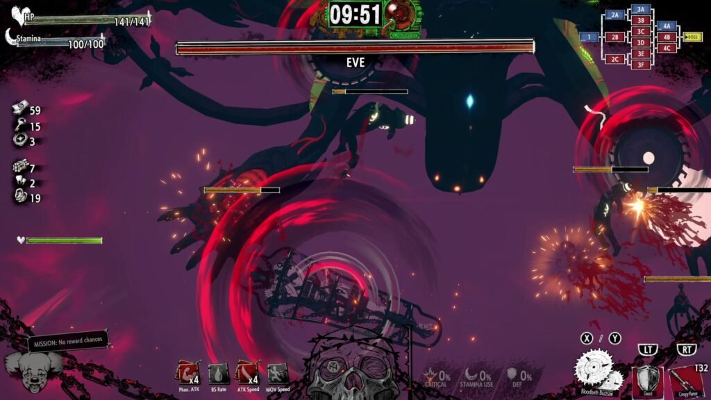 A ação é intensa, brutal e estilizada. O combate mistura armas brancas e de fogo, tudo dentro de uma estrutura de progressão típica dos hack ’n slashes modernos. É possível melhorar habilidades, desbloquear equipamentos e até apostar recursos em um cassino, onde o azar é praticamente garantido. Há também NPCs duvidosos que vendem upgrades em troca de moedas, ossos ou… orelhas. Nada em Hotel Barcelona é normal — e é justamente por isso que ele é tão intrigante.
