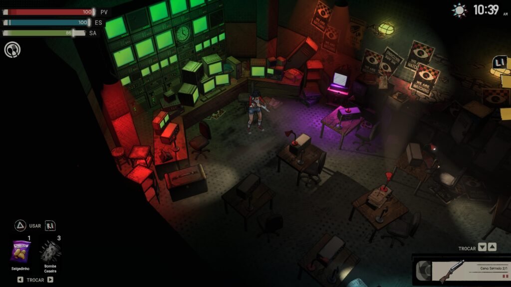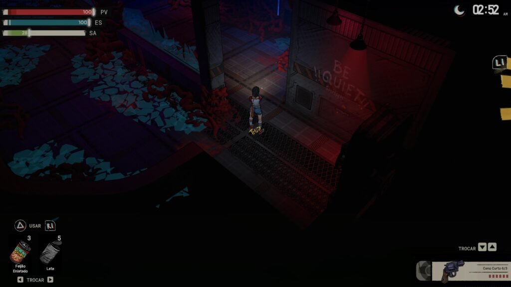 Esses recursos visuais também têm função prática, já que grande parte da jogabilidade gira em torno da furtividade. Fazer barulho pode atrair inimigos perigosos, exigindo planejamento constante. A câmera isométrica funciona bem, mas ocasionalmente limita a visão, resultando em encontros inesperados. Embora seja possível distrair inimigos, não demora para o jogador acumular armas suficientes para enfrentar os perigos de frente.