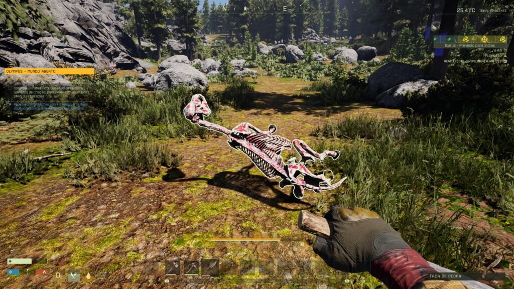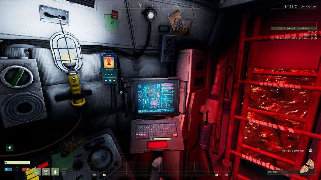 O progresso em Icarus segue aquela linha clássica do gênero, mas com profundidade acima da média. Você começa improvisando ferramentas simples e, aos poucos, desbloqueia sistemas mais elaborados.
