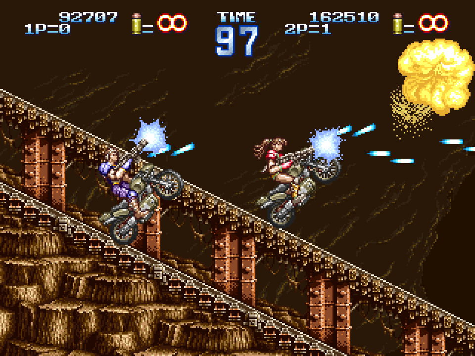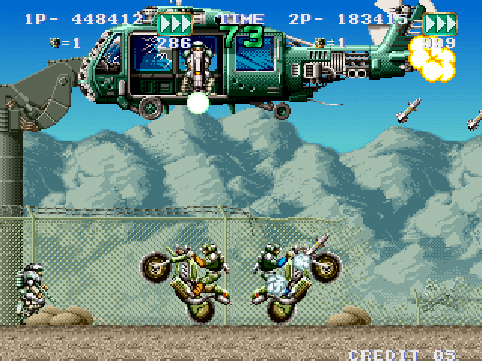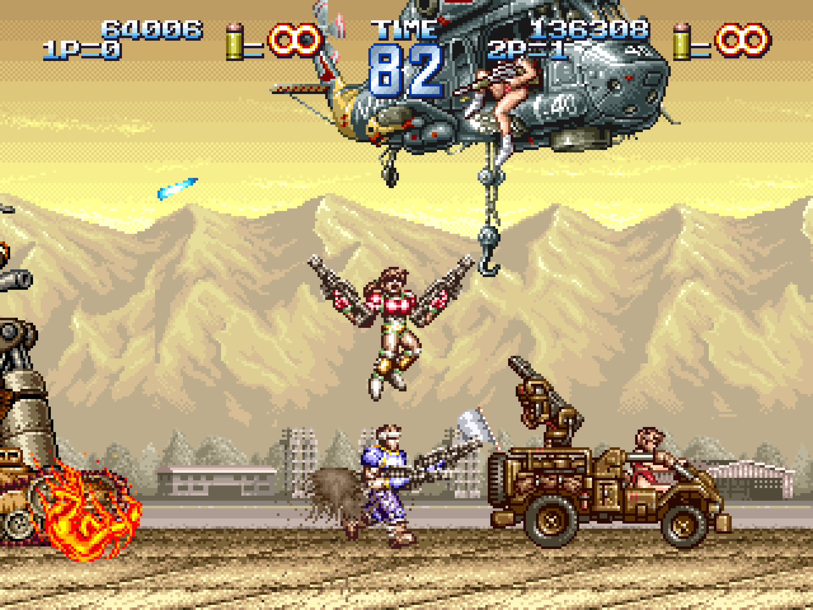- GunForce (1991) – Run and Gun que inspirou Metal Slug, vem em duas versões: A original para fliperamas, de 91 e a portada pela Bits Studios para SNES, em 1992. Todas vem com a versão ocidental e também a japonesa. O jogo se destacava pela possibilidade de tiro em 8 direções além de direcionamento de cenário tanto na vertical quanto horizontal e a interação com o mais veriados tipos de veículos como motos, helicópteros, teleféricos e etc.