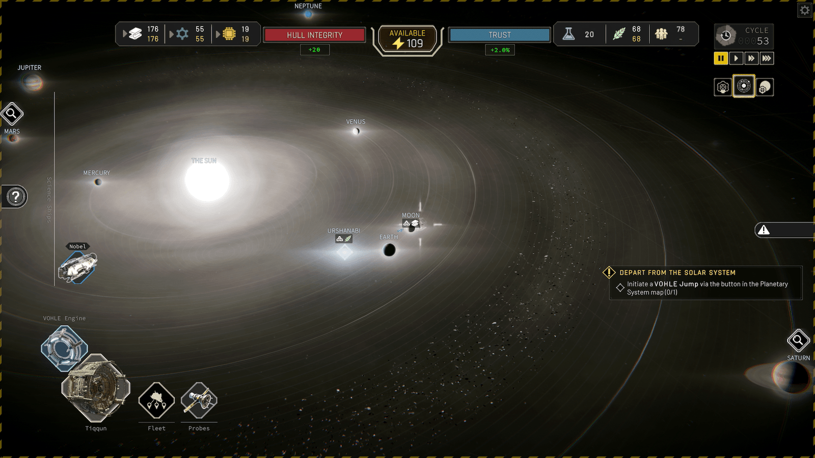- Moral da Tripulação: Decisões impactam diretamente a felicidade e estabilidade dos colonos.