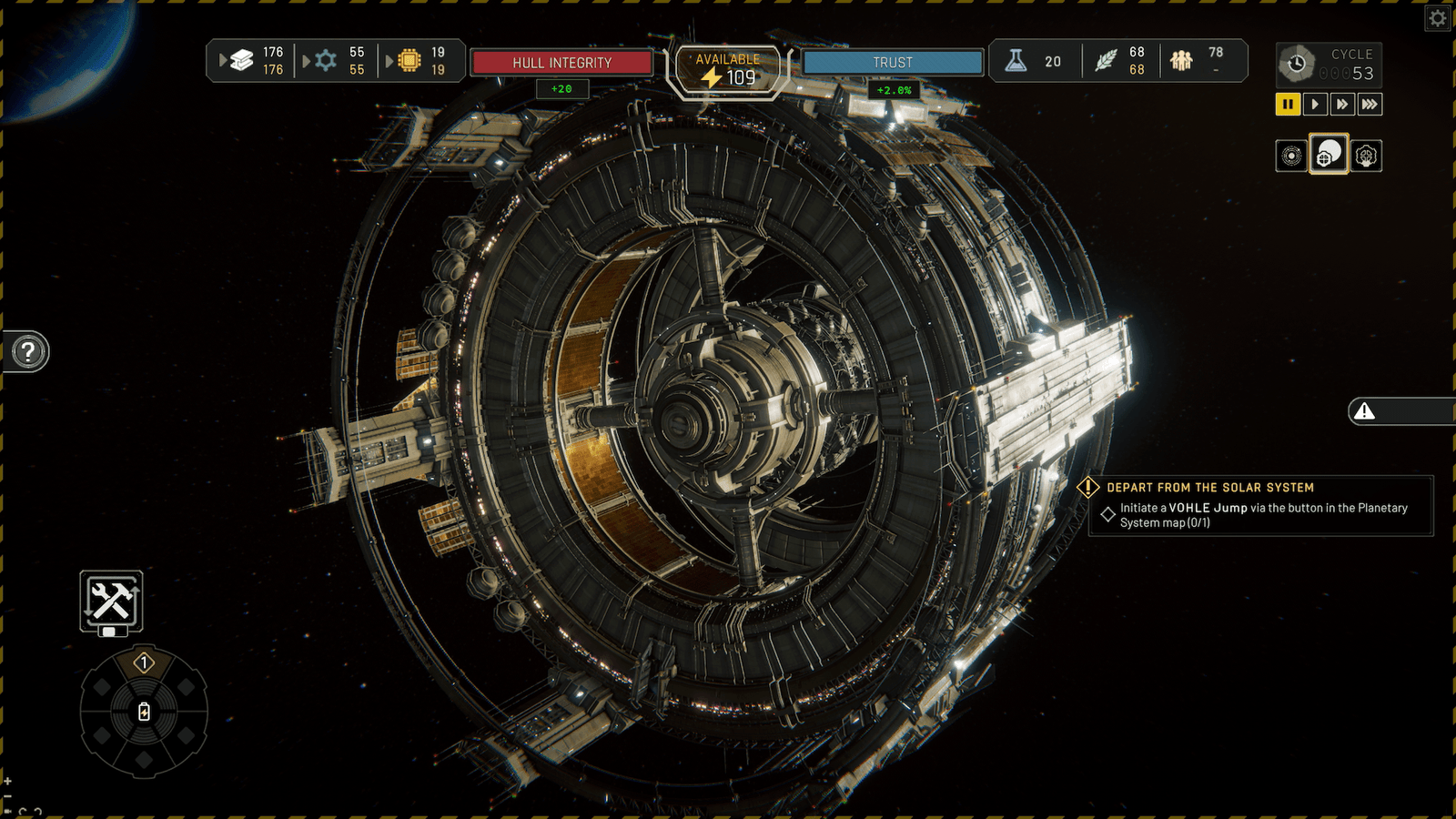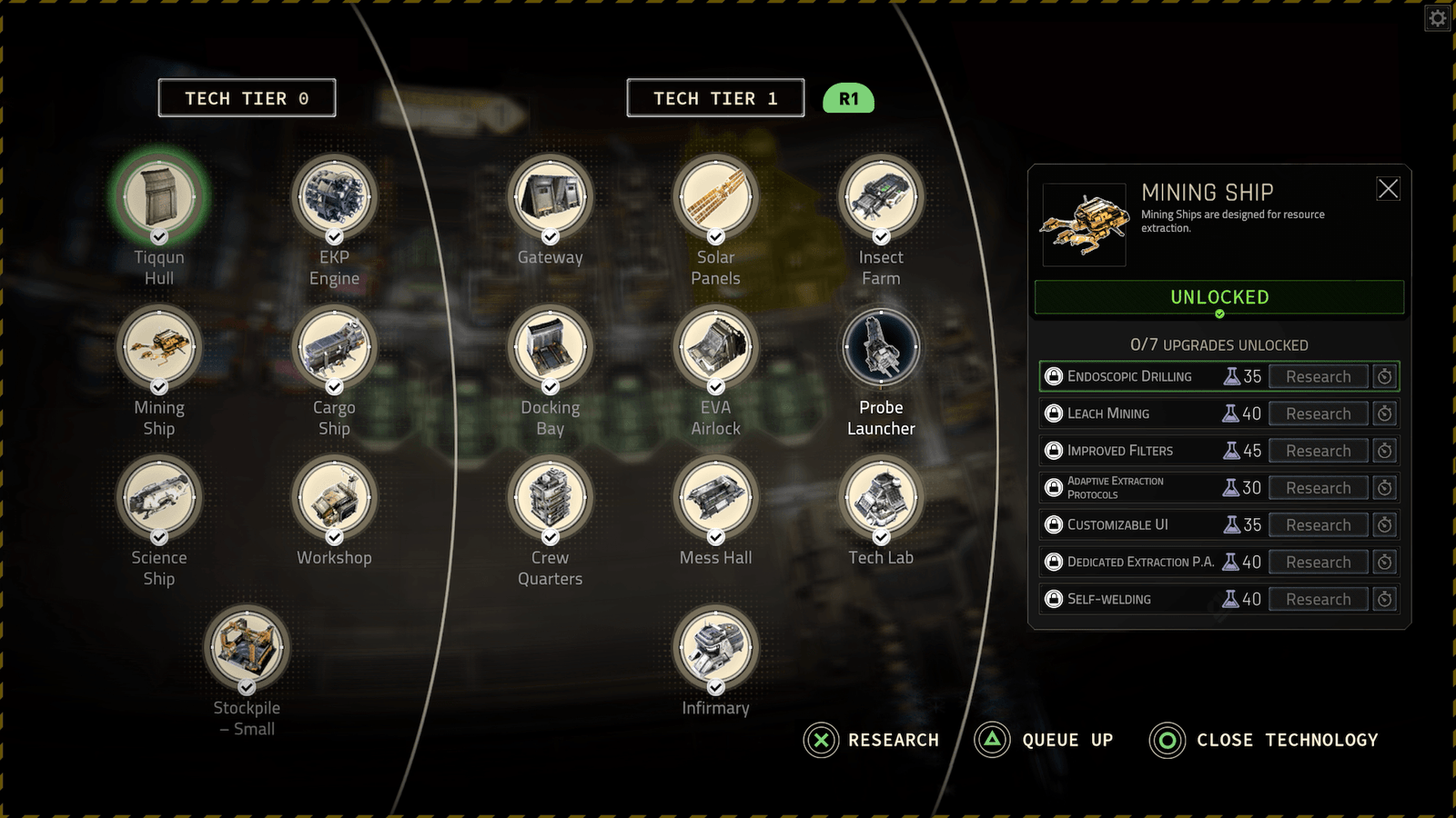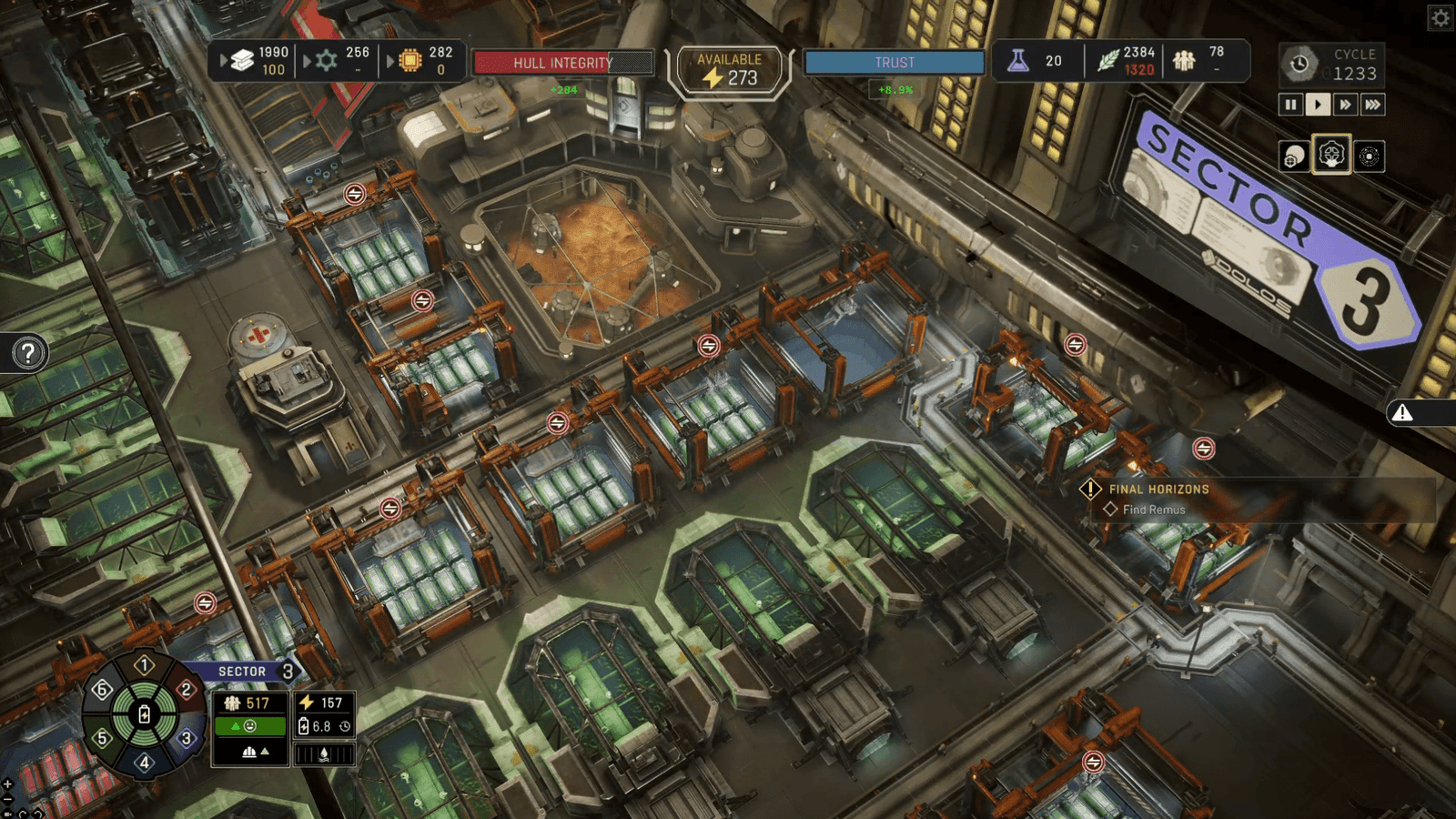 O coração do jogo é a administração da Tiqqun. O jogador deve construir e otimizar setores para manter a tripulação viva e produtiva. Isso envolve: