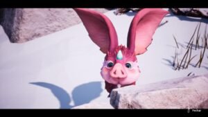 Apesar da boa ideia, a trama é rasa e os personagens carecem de desenvolvimento. Kaku pouco fala, age sem muita motivação e raramente demonstra personalidade. Até o simpático Porquin, seu porco voador parceiro de jornada, acaba sendo subaproveitado. Ainda assim, o jogo abraça seu caráter de “aventura despretensiosa” e entrega algo leve, quase infantil — e é justamente nisso que mora parte do seu charme.