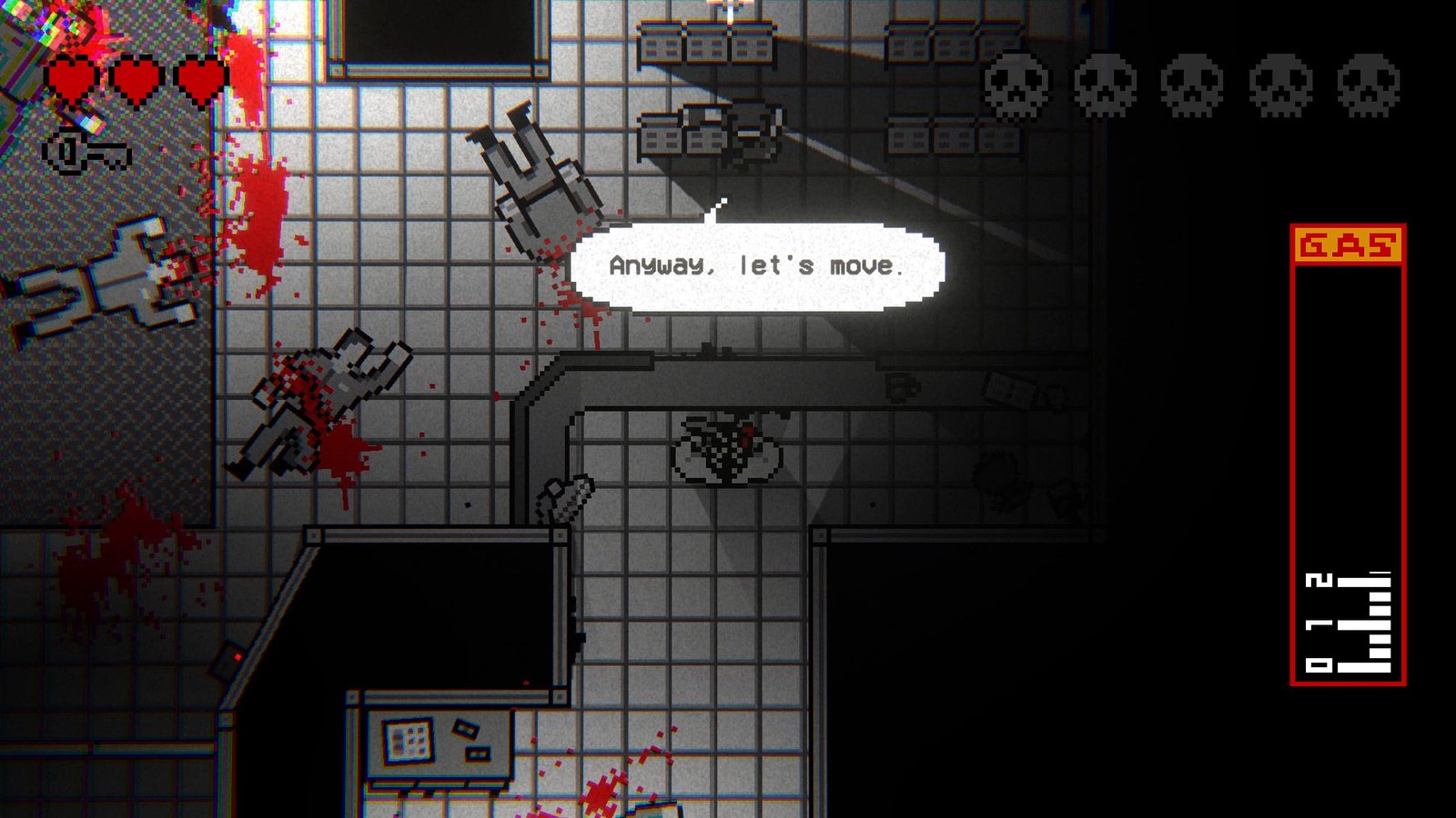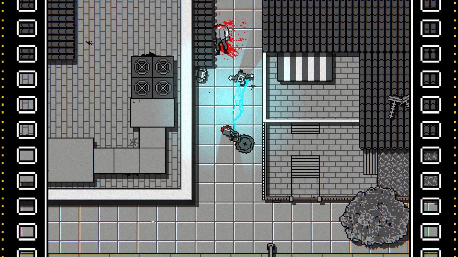 - Homenagem aos jogos retrô: Uma homenagem intrigante aos clássicos jogos de ação de pixel art de cima para baixo e aos filmes Grindhouse com uma história intrigante e viagem no tempo