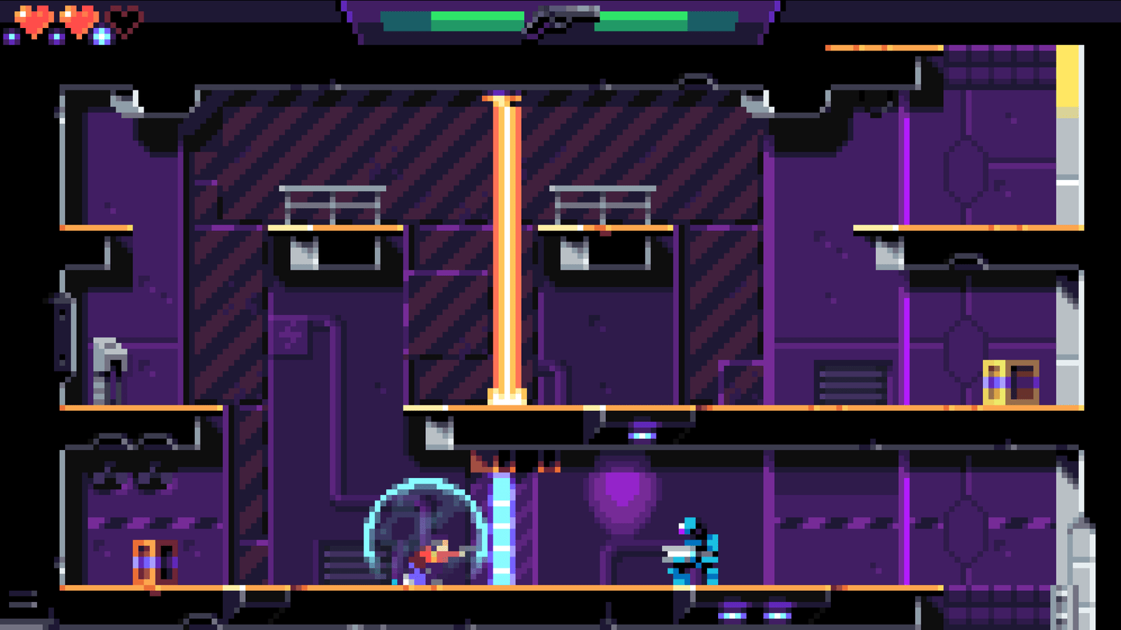 - Explore cenários em glorioso pixel art, incluindo ruínas alienígenas misteriosas, uma prisão voadora, uma floresta desolada e uma megalópole tecnológica