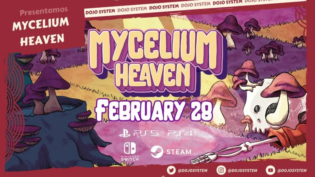 A Dojo System anunciou que Mycelium Heaven será lançado em 28 de fevereiro para PS4, PS5, Switch e PC via Steam. As versões de Xbox Series e mobile chegarão mais tarde.