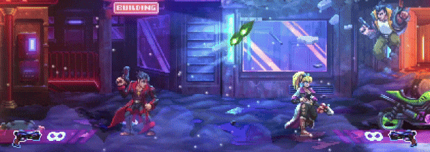 Neon Inferno vibra uma aura cyberpunk pixelada muito bacana e apresenta em seu level design muita criatividade, dando uma personalidade própria e excitante ao gameplay, que por muitos momentos remete a Contra, Wild Guns e Metal Slug misturados, com algum pequeno detalhe semelhante até aos beat’em ups clássicos.