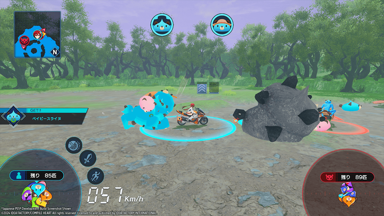 O jogo combina elementos de corrida e combate. O objetivo principal em cada fase é coletar 100 Dogoos antes dos adversários, que incluem as amigas de Uzume sob controle mental. As mecânicas são simples: além de pilotar a moto, os jogadores podem realizar investidas e usar raios de curto alcance para atacar rivais e capturar Dogoos. Cada personagem possui habilidades únicas, permitindo diferentes abordagens no combate.