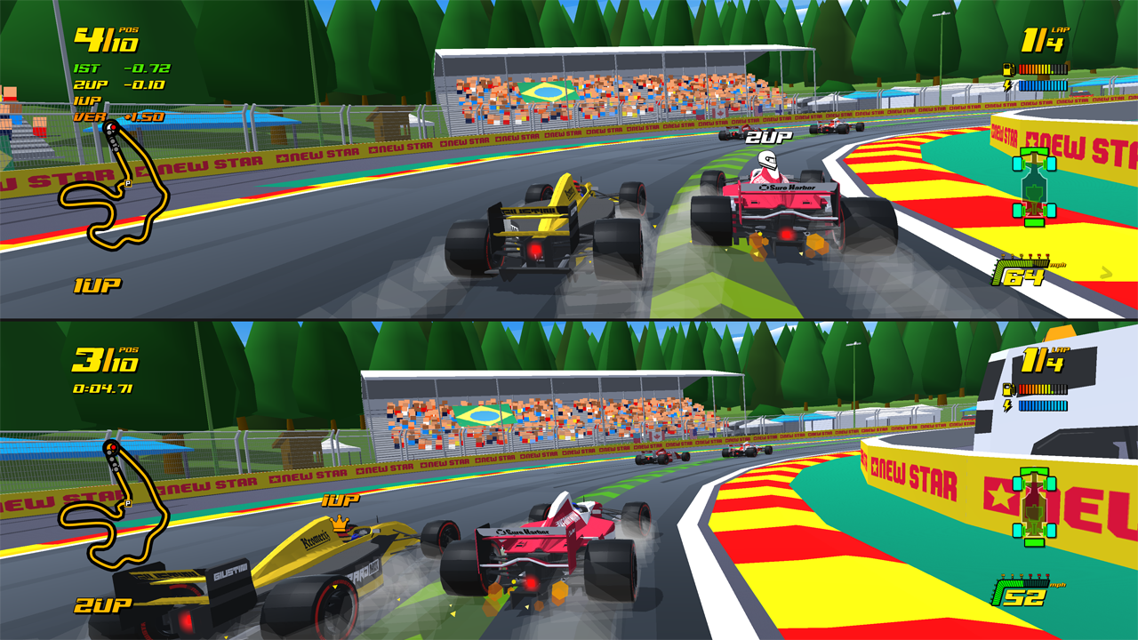 NEW STAR GP é um jogo de corrida arcade retrô que coloca você no comando enquanto assume o controle de sua própria equipe de automobilismo e compete em circuitos de corrida emocionantes e icônicos ao redor do mundo, desde a década de 1980 até os dias atuais.