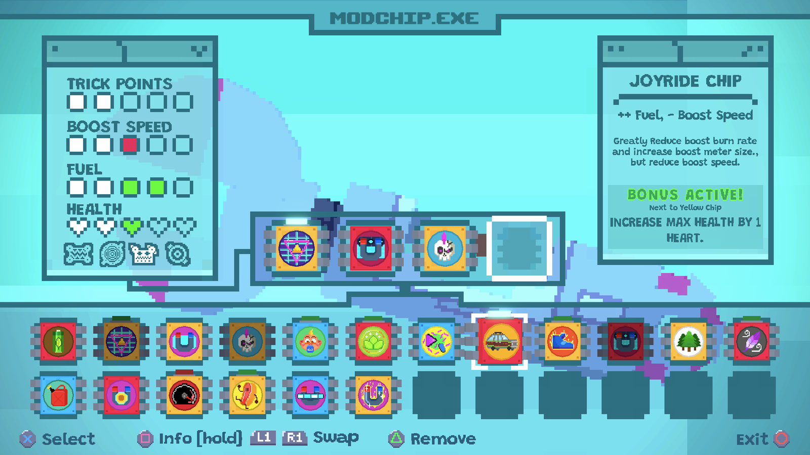 - Sistema de atualização de Modchip: equipe até 24 chips diferentes para aumentar as estatísticas gerais.