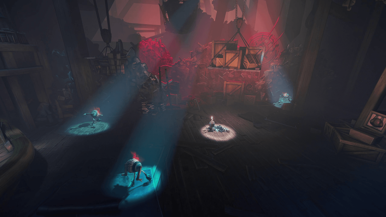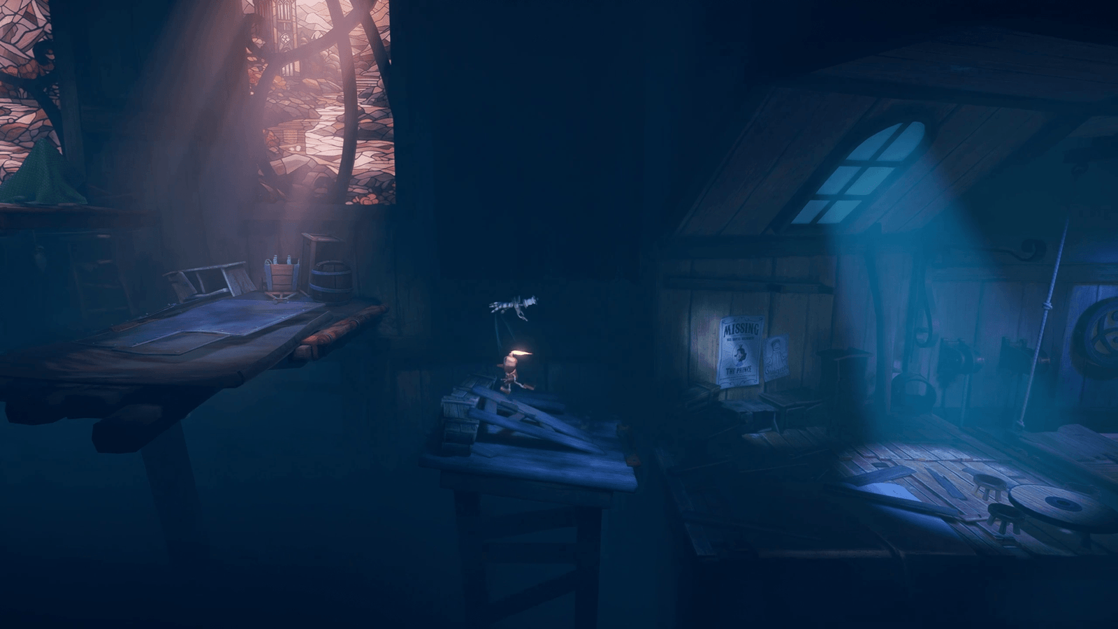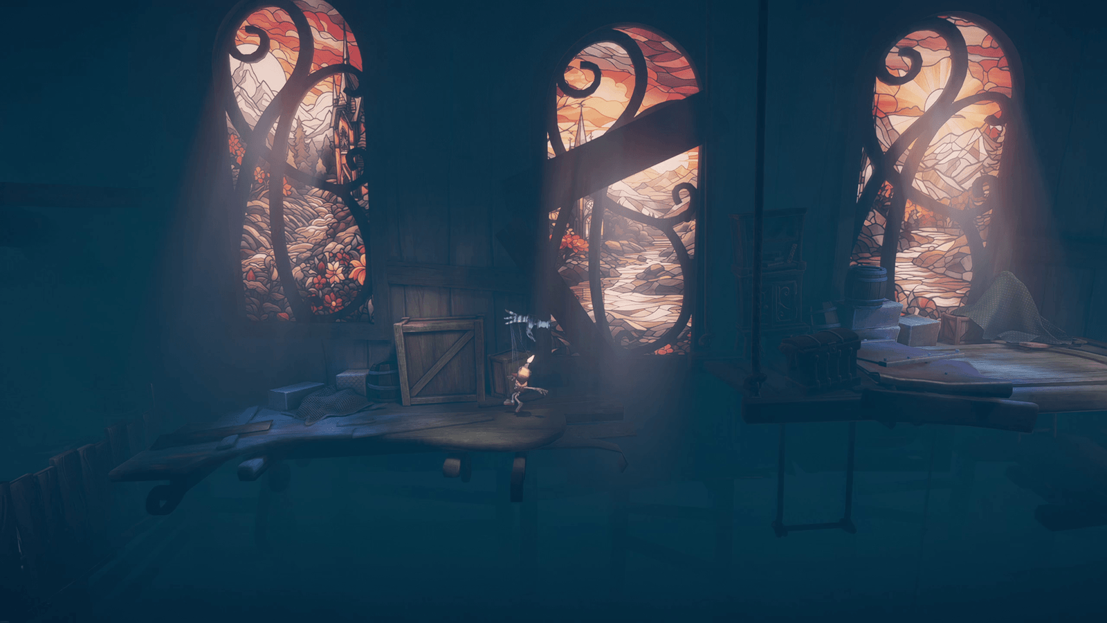 A estética lembra uma mistura de Little Nightmares com Unravel, mas com identidade própria. É sombrio, sim, mas também mágico. O contraste entre luz e sombra, os detalhes nos bastidores de cada cenário, e o charme artesanal de tudo criam uma atmosfera imersiva e memorável.
