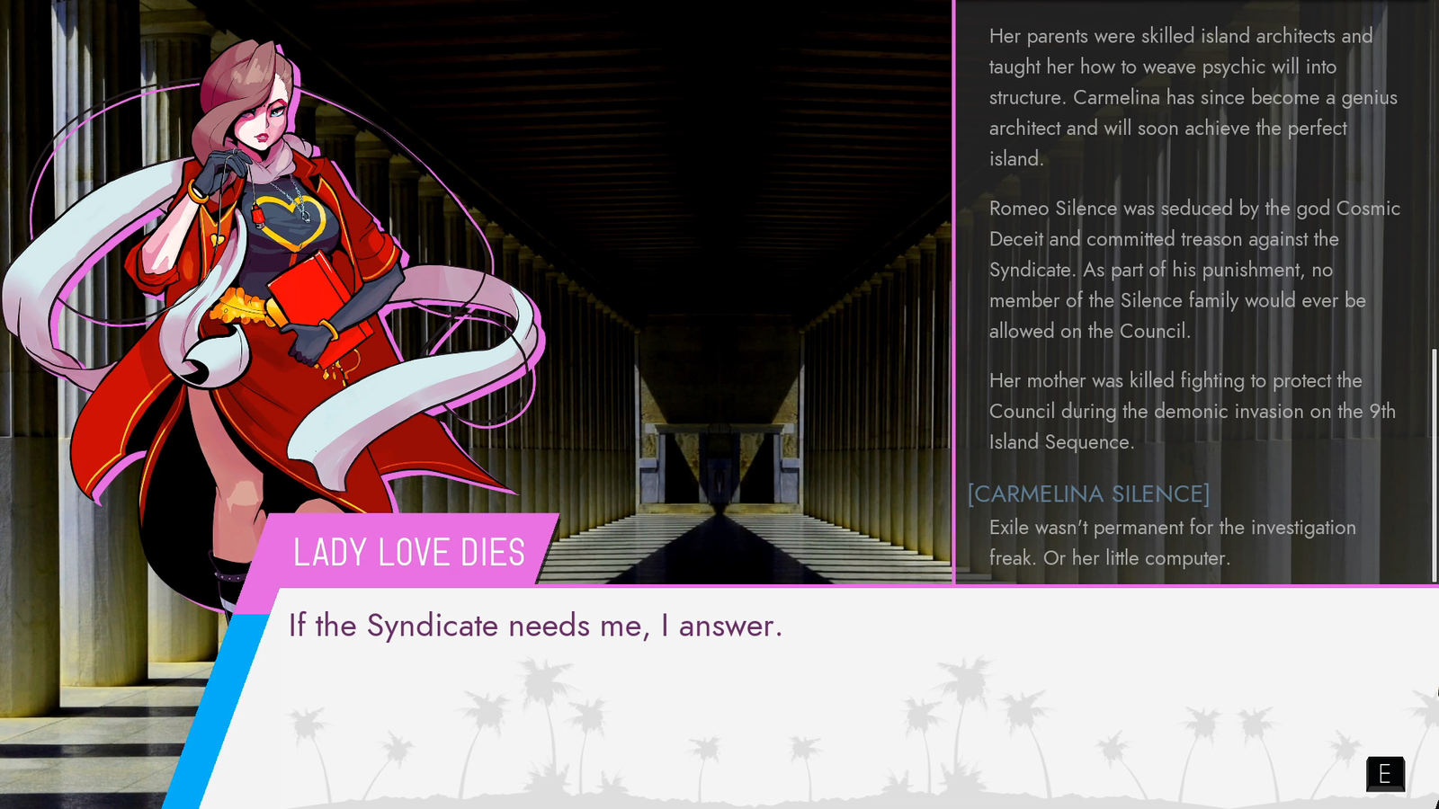 Logo no início assumimos o papel da detetive Lady love dies que meio que estava no seu descanso ocioso acima de uma ilha que seria o paraíso, já que em tese no paraíso não precisamos de detetives não é mesmo? Então né rs, de repente neste paraíso, acontece um assassinato e ela é intimada pela corporação ou algo do tipo, para investigar o caso.