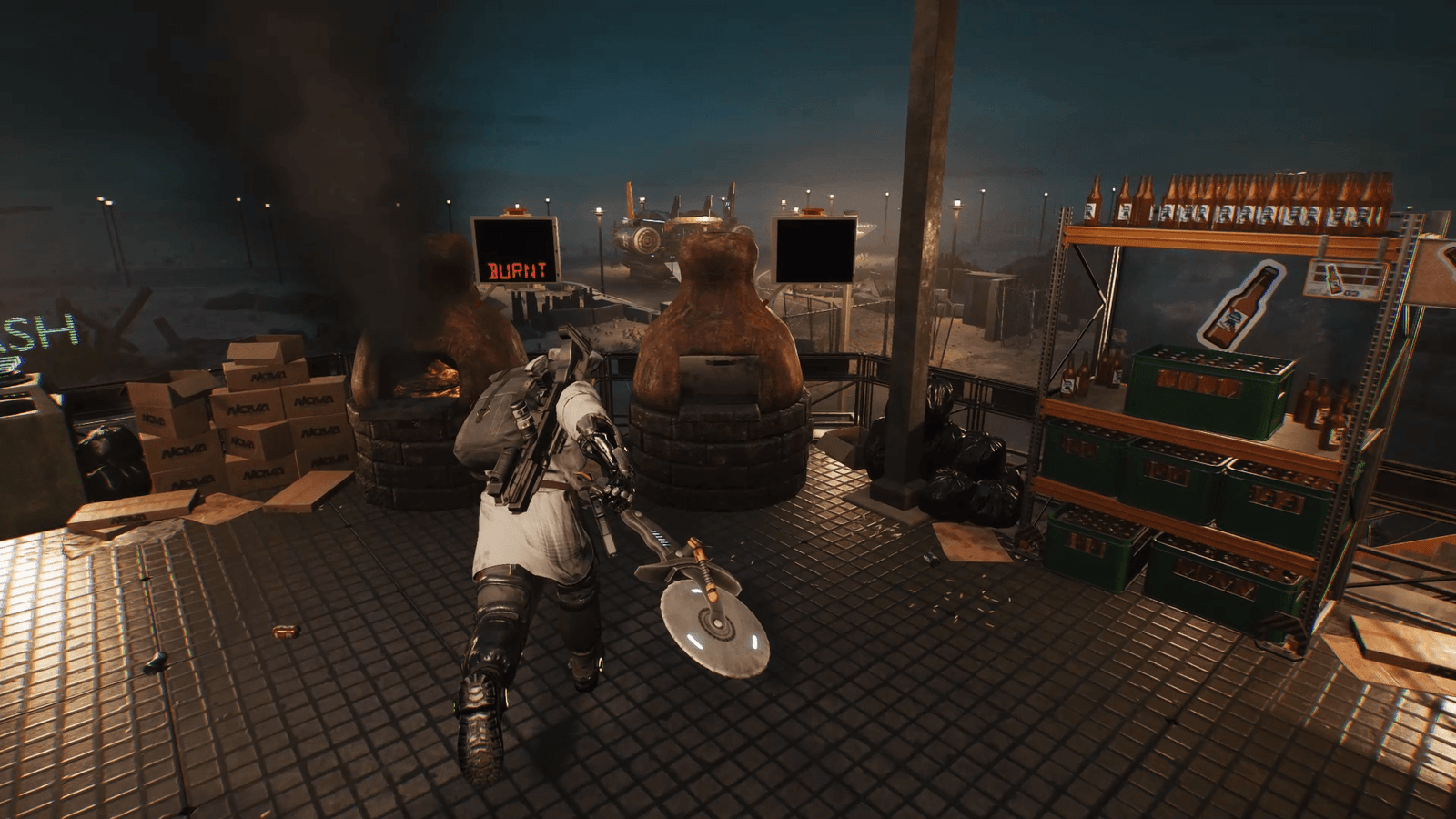 - Cozinhando sob fogo: fatie, monte e sirva refeições no meio da batalha enquanto desvia de balas e controla ondas de inimigos.