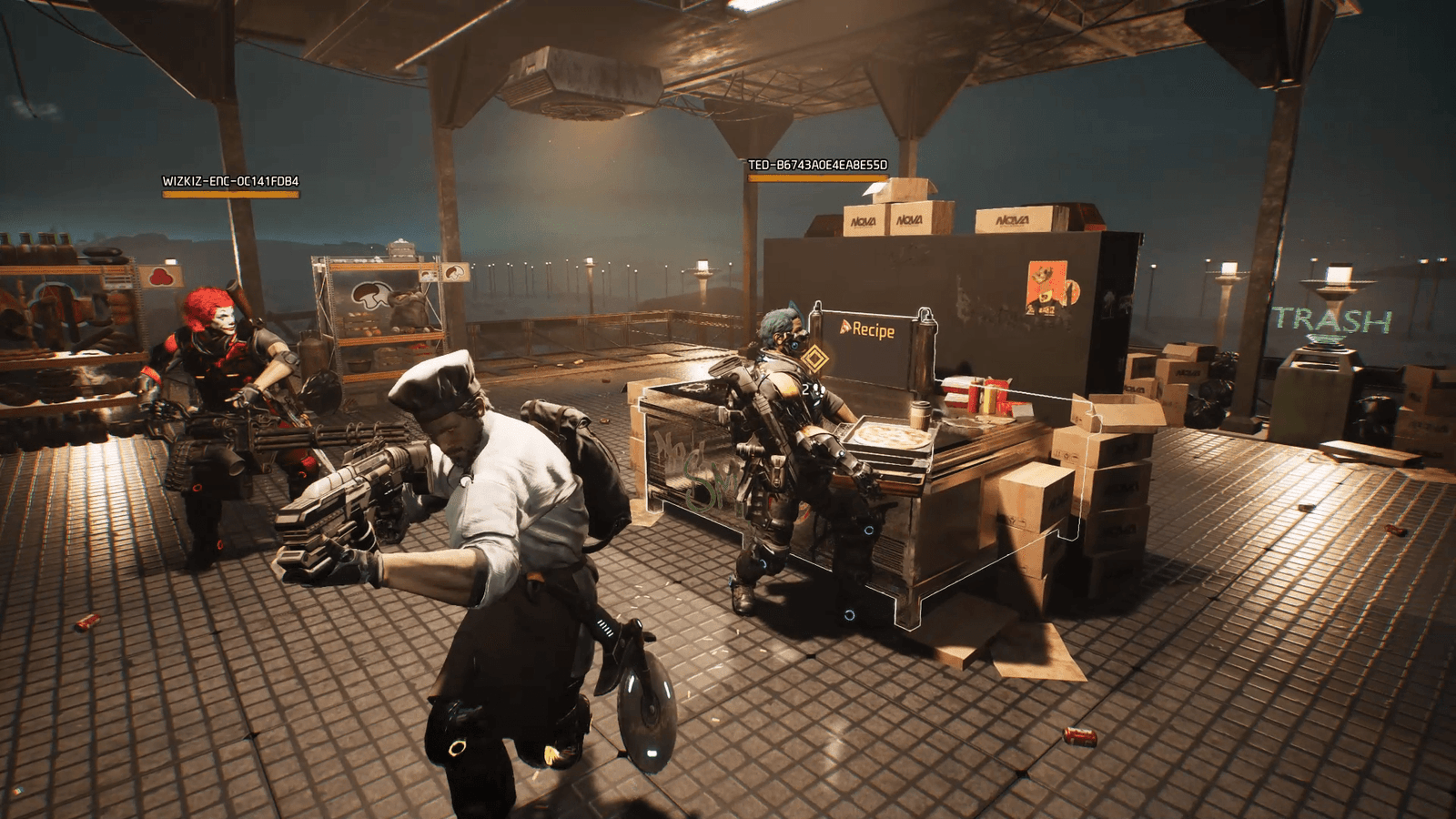 Um jogo de tiro cooperativo caótico em terceira pessoa onde caças de recompensas hilárias e culinária em pânico se misturam através do espaço e do tempo – pense em Gears of War encontrando Overcooked!