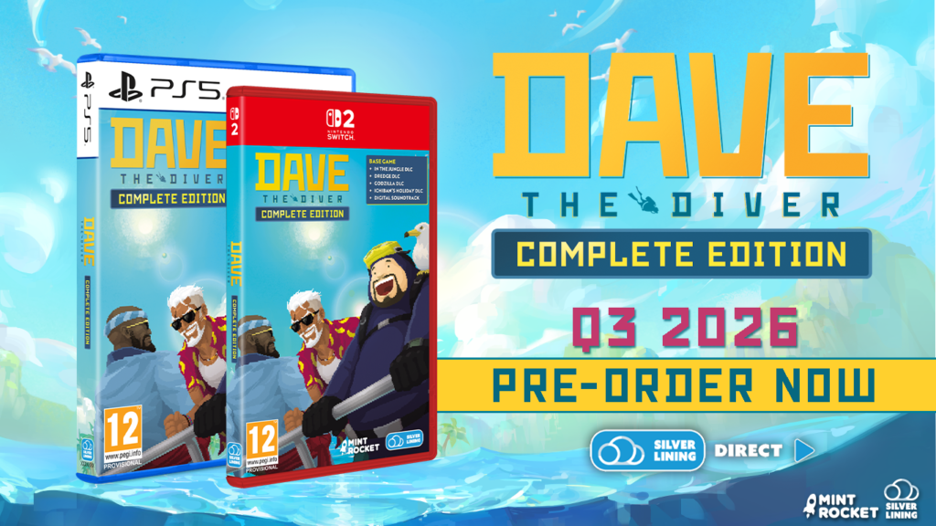 Logo após a emocionante revelação da data de lançamento do DLC In The Jungle, a Silver Lining Interactive e a MINTROCKET anunciaram que a pré-venda física das edições completa e de colecionador de DAVE THE DIVER já estão disponíveis para PlayStation 5 e Nintendo Switch 2 através da Silver Lining Direct e lojas físicas.
