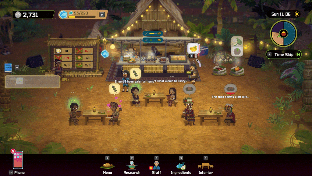 Uma das maiores diferenças de “In the Jungle” em relação ao jogo base é a introdução do Bancho Grill, um restaurante totalmente novo em Utara que oferece um cardápio completo com pratos de água doce.