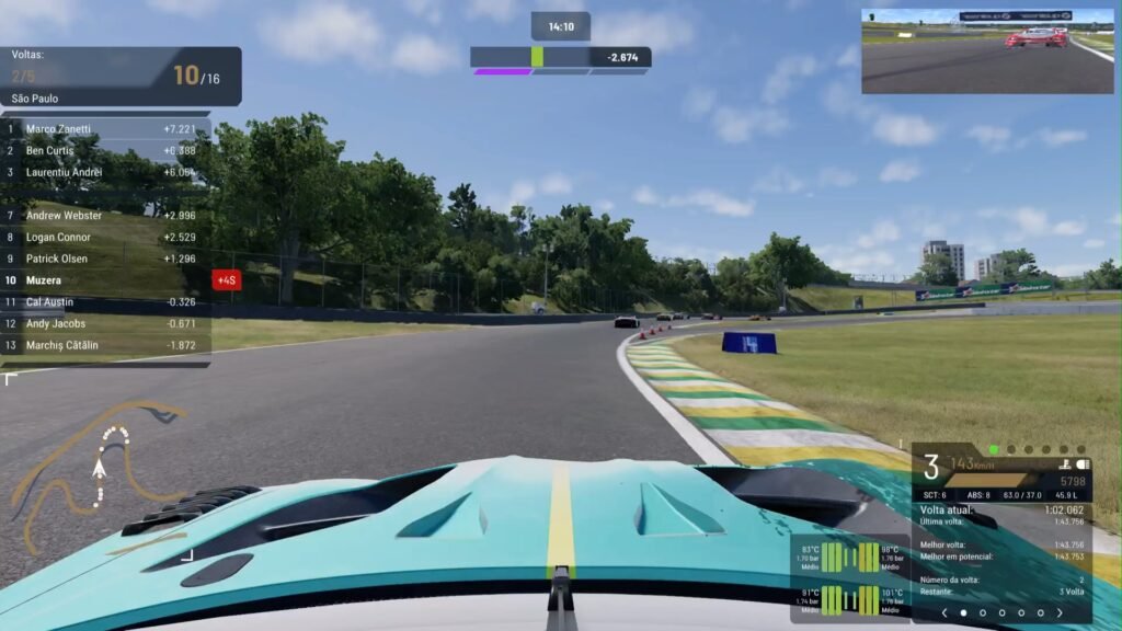 O sistema de setup, extremamente profundo, é um prato cheio para engenheiros virtuais — combustível, aerodinâmica, transferência de peso, pressão de pneus, comportamento da suspensão, tudo está lá. Mas mesmo com ajustes cuidadosos, alguns modelos insistem em reagir de formas imprevisíveis.