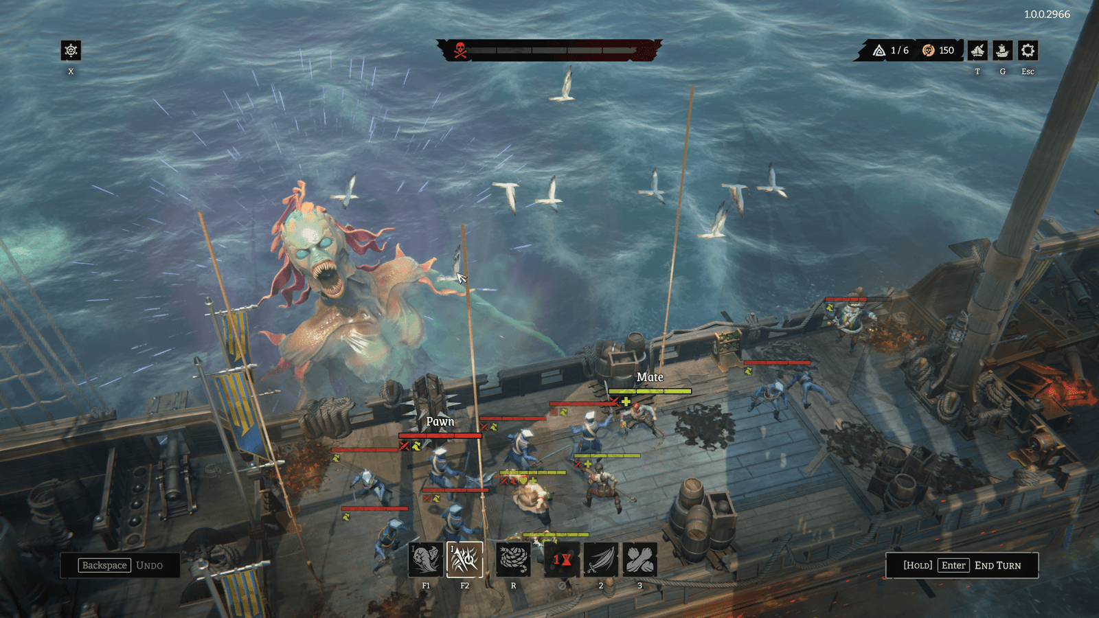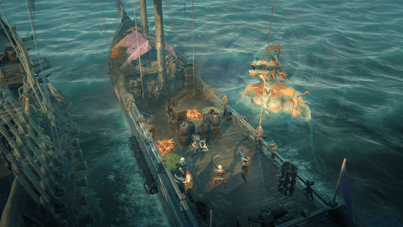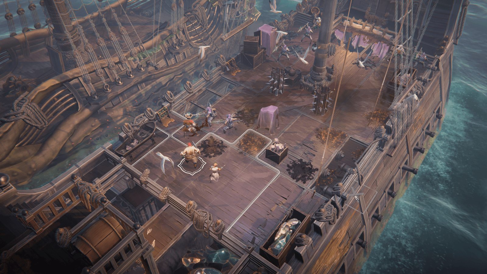 Uma das mecânicas mais inovadoras do jogo é a possibilidade de manipular o ambiente a seu favor, seja utilizando canhões para reduzir o número de inimigos antes do combate direto ou empurrando adversários para o mar durante a luta. Além disso, cada membro da tripulação possui habilidades únicas, o que incentiva o uso de táticas variadas para maximizar a eficiência dos ataques e minimizar perdas.