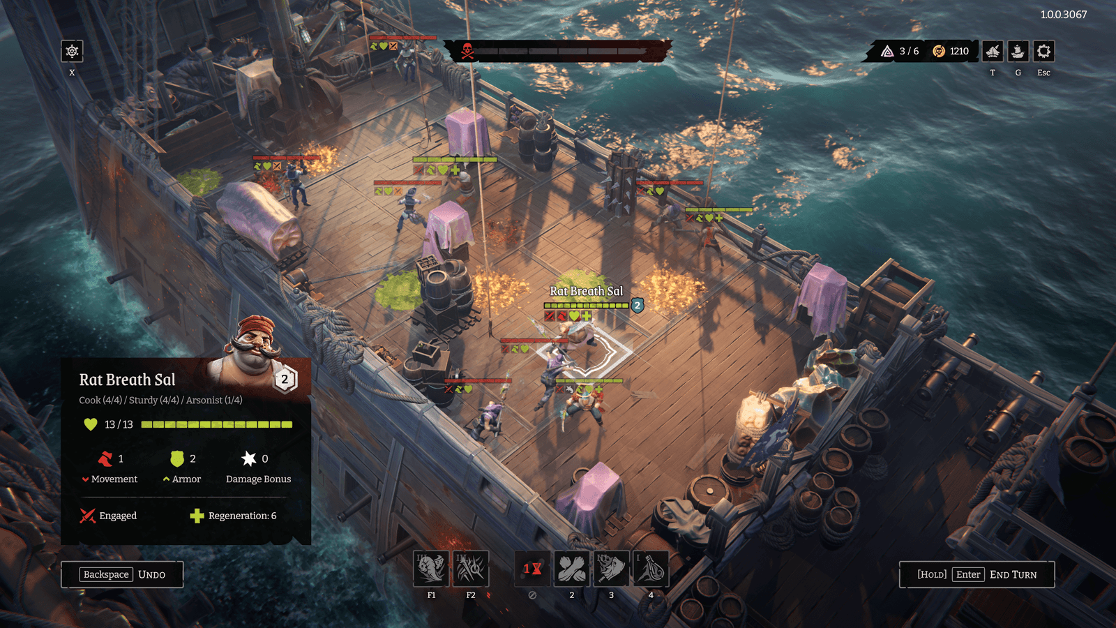 - Os danos permanecem ao longo das aventuras, obrigando-te a trocar os membros da tripulação de forma a dar-lhes tempo para recuperar.