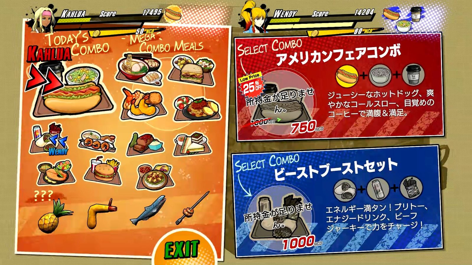 No vagão-cozinha Tuff E Nuff, que também serve como ponto de controle em fases, você pode combinar os vários itens alimentares que possui. Criar refeições combinadas com três tipos de comida aumenta o potencial de cura e também pode conceder efeitos especiais! Seja atacando ou comendo, as combinações são a melhor opção!