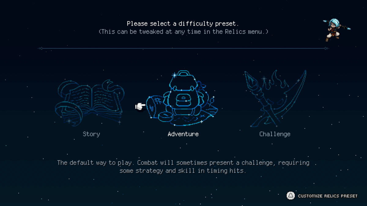 - Predefinições de Dificuldade – Três opções de dificuldade agora estão disponíveis ao iniciar um novo jogo, que são predefinições usando as Relíquias do jogo. Novas Relíquias também foram adicionadas, tanto para ajustes de qualidade de vida quanto de dificuldade.