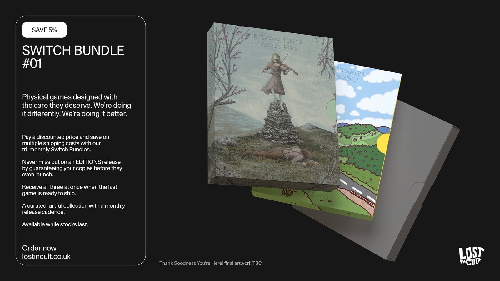 “Sonhávamos há muito tempo em lançar uma versão física de The Excavation of Hob’s Barrow para Switch, mas todas as possibilidades que exploramos acabaram dando em nada. Decidi publicar um último tweet, na esperança de que alguém pudesse nos ajudar a concretizar isso — e esse alguém era Lost in Cult. Foi um imenso prazer trabalhar em estreita colaboração com a equipe deles para criar algo realmente especial — o resultado final é um lançamento físico belíssimo, verdadeiramente além dos nossos sonhos mais loucos. A arte criada para este lançamento realmente me impressiona.” – Aitcheson