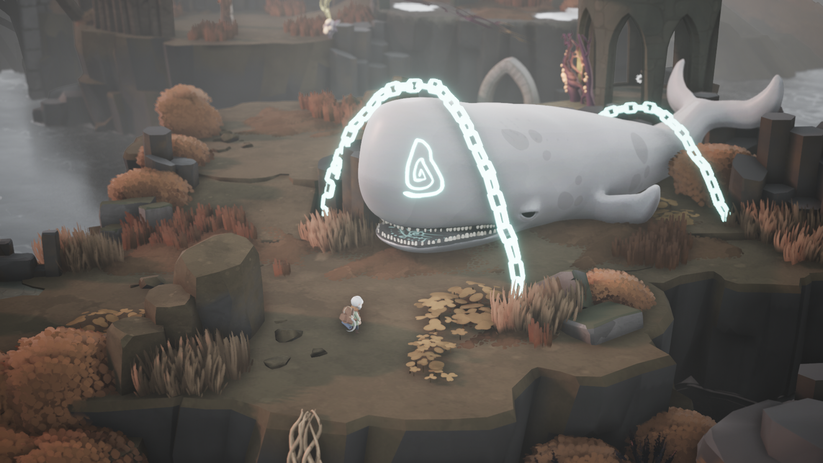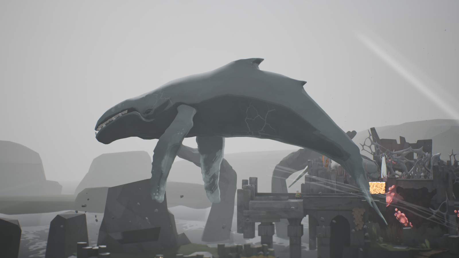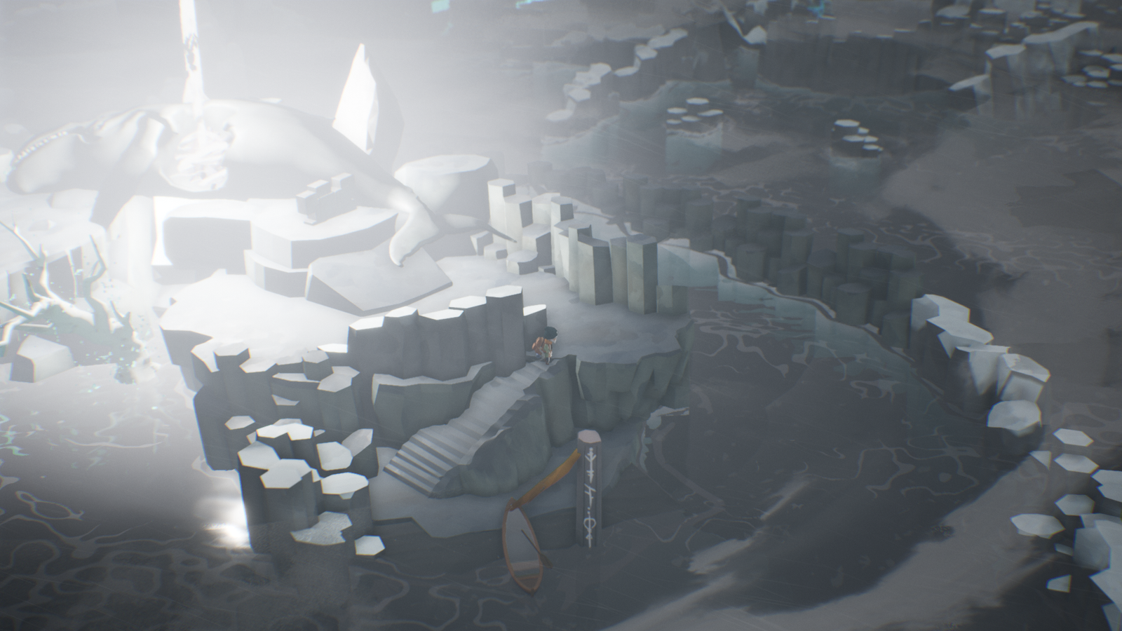 Explore um mundo que idolatra o mar com deuses-baleias, que lembra as vastas paisagens da Islândia.