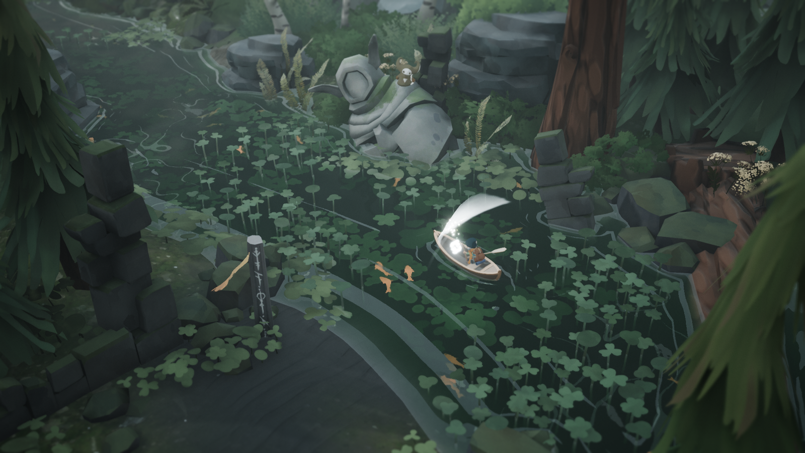 Use o poder do cajado de Kazimir para propelir seu pequeno barco por águas traiçoeiras e rios sinuosos.