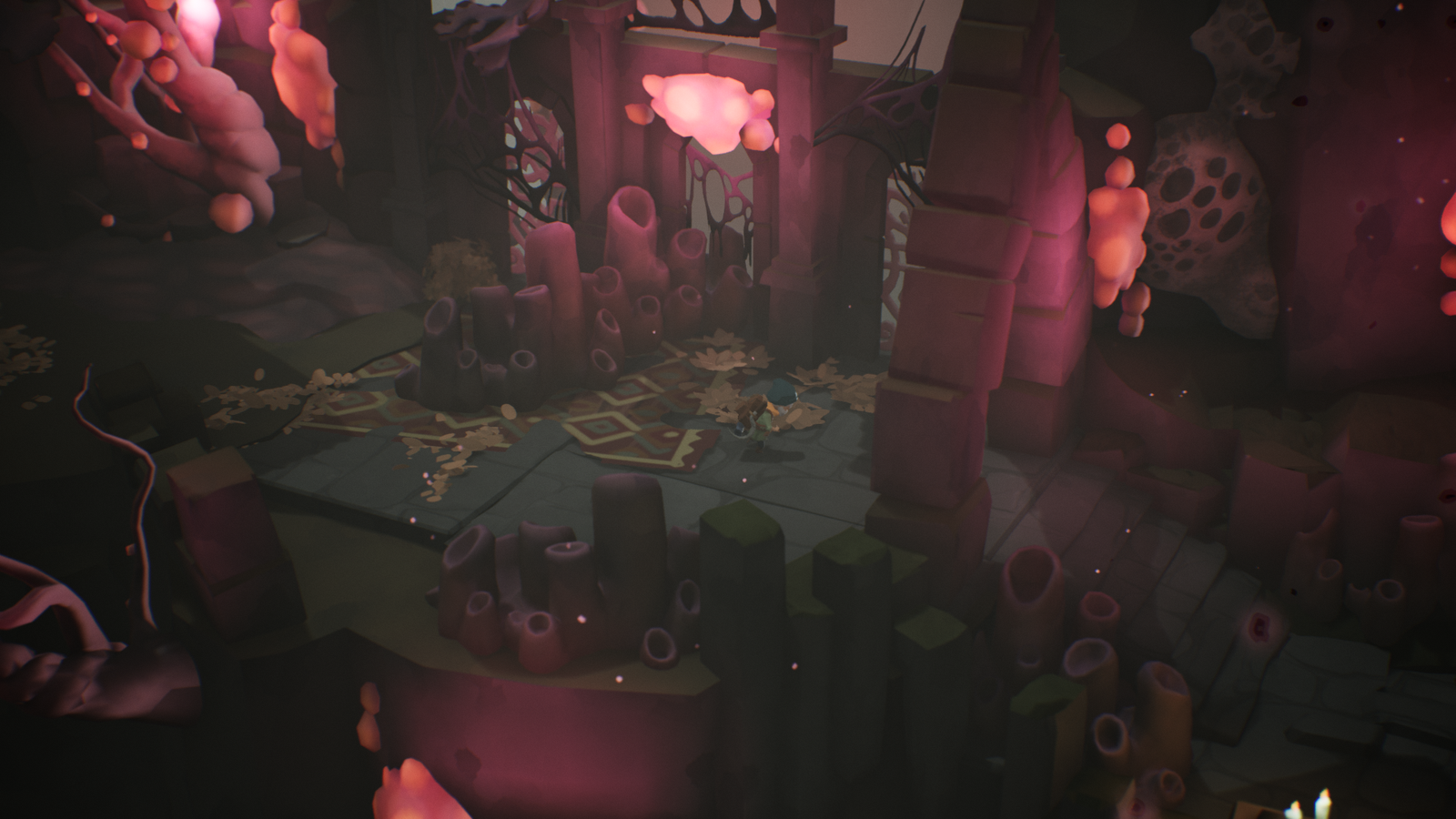 Encontre formas diferentes de usar o cajado para resolver puzzles e remover a mancha do Miasma do mundo.
