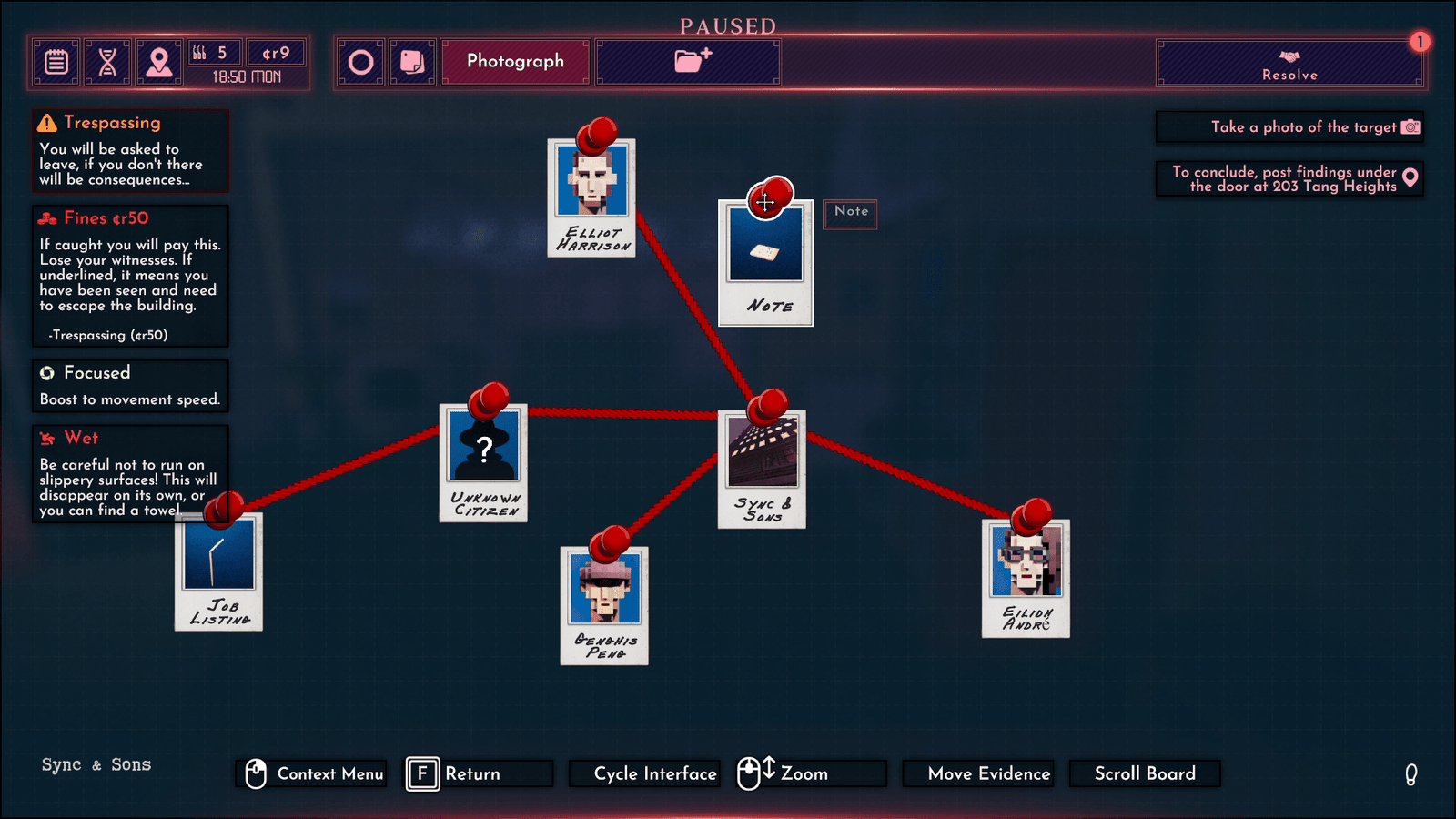 Um dos principais desafios de Shadows of Doubt é a complexidade de suas investigações. O jogo não segura a mão do jogador, oferecendo poucas dicas claras, o que pode ser frustrante para jogadores que preferem um estilo mais direto. Contudo, para os fãs de jogos de detetive que apreciam a liberdade de explorar e deduzir por conta própria, essa abordagem é um dos grandes atrativos.