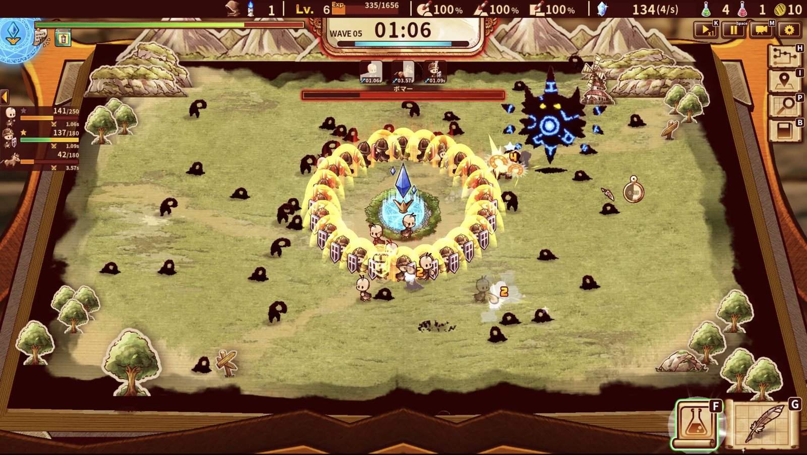 Cada onda de inimigos será mais forte que a anterior. Use os artefatos (instalações) exclusivos que você ganhar como recompensa para reforçar sua fábrica e defender sua posição. Você deve sobreviver a cada batalha extenuante e derrotar a Grande Calamidade que o aguarda no final.