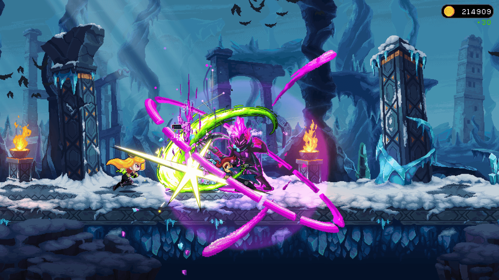 - Estilo visual e trilha sonora: Os gráficos são carismáticos e coloridos, enquanto a trilha sonora retro complementa bem a ambientação.