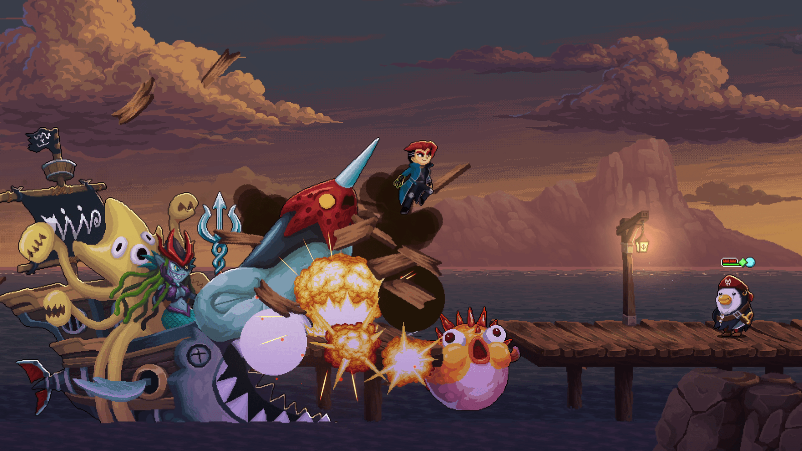 Embarque em uma aventura nesse mundo de arte pixelada 2D repleto de vida e histórias de habitantes espalhados por várias localidades do Inferno, incluindo belas praias, fortalezas vulcânicas, florestas exuberantes e ainda mais.